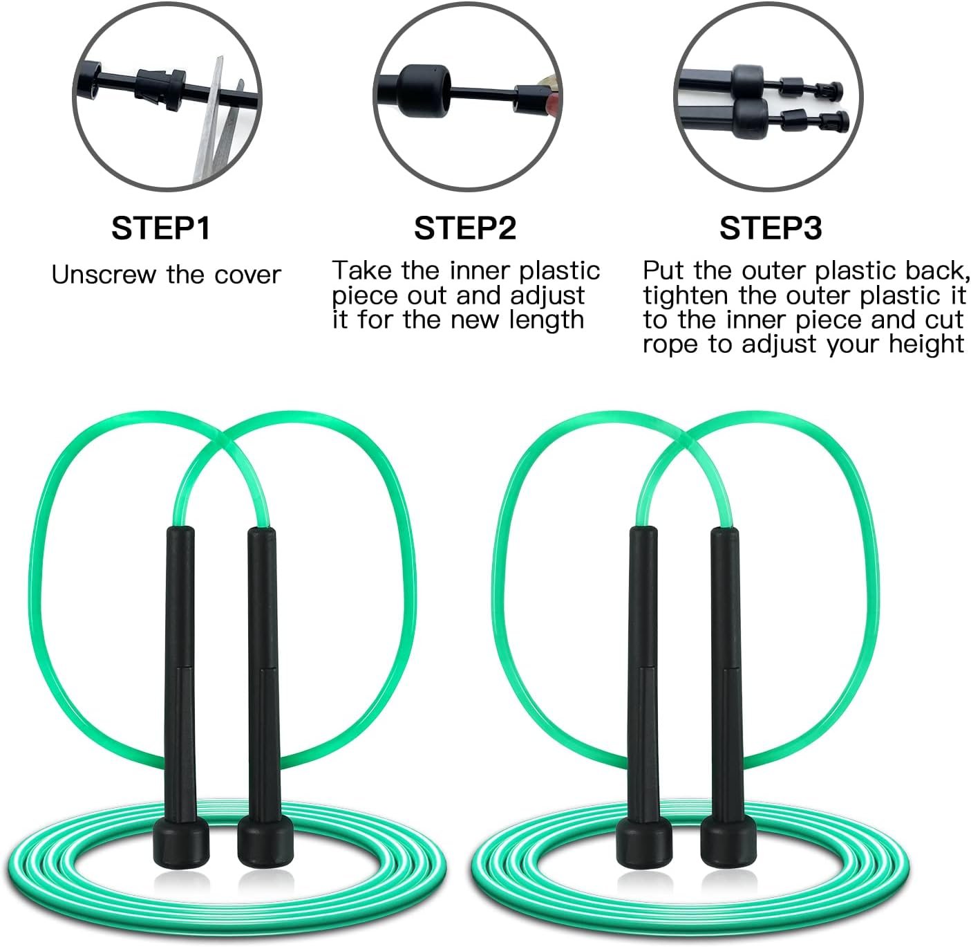 [ADJUSTABLE] This skipping rope is up to 9 feet long, you can adjust the length to whatever length you want, and it’s very easy to operate. It is very suitable for men, women, elderly and children.