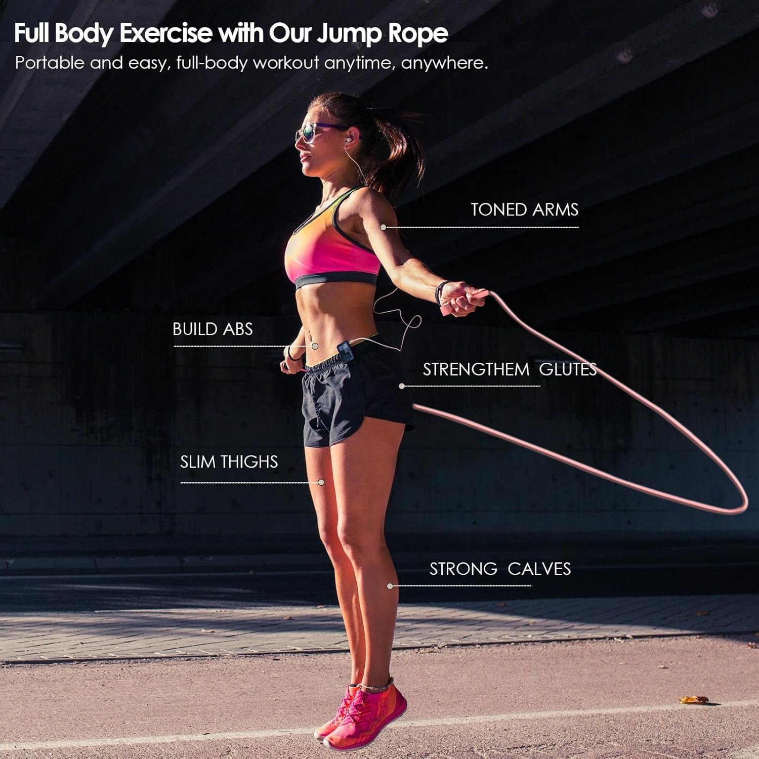 Lightweight and Portable: Take your workout anywhere with this lightweight and portable workout jump rope. Whether you’re exercising indoors or enjoying the great outdoors, this jump rope is your ideal fitness companion. Its compact design makes it easy to carry, so you can seamlessly integrate cardio into your daily routine. Maximize calorie burn and enhance cardiovascular health wherever you go!