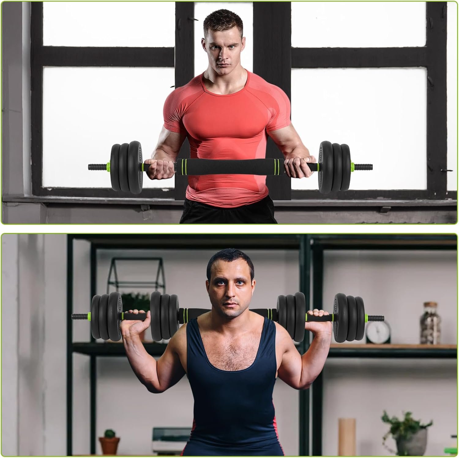 Functional Dumbbell Set : The 4-in-1 adjustable dumbbell set allows you to have a set of dumbbells, kettlebells, barbells, push-ups four exercise modes, which is easy to install. The weight plate adopts an octagonal design to prevent rolling and is easy to store.