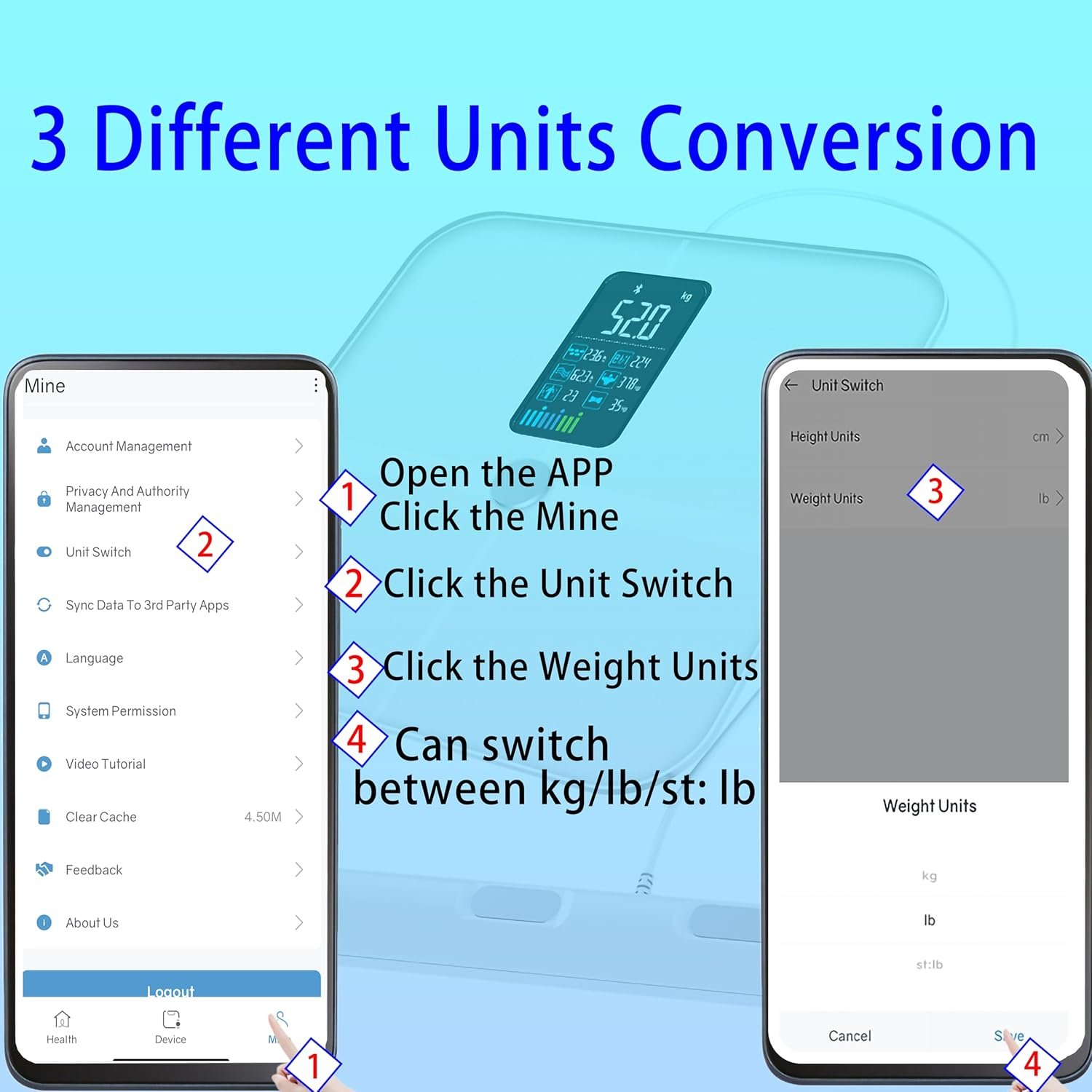 Share with Friends and Family : With the ability to create up to 24 user profiles and It’s smart enough to automatically recognize who steps on, each user will receive the data on their own devices conveniently, which allows for seamless tracking of your family’s health. , the Scale is perfect to share with your family and friends. Moreover, the app features different modes to meet different needs. For example, you can use Baby Mode to help track baby or pet’s growth. The scale is great for bodybuilders, weight loss enthusiasts, and anyone who wants to maintain a healthy lifestyle.