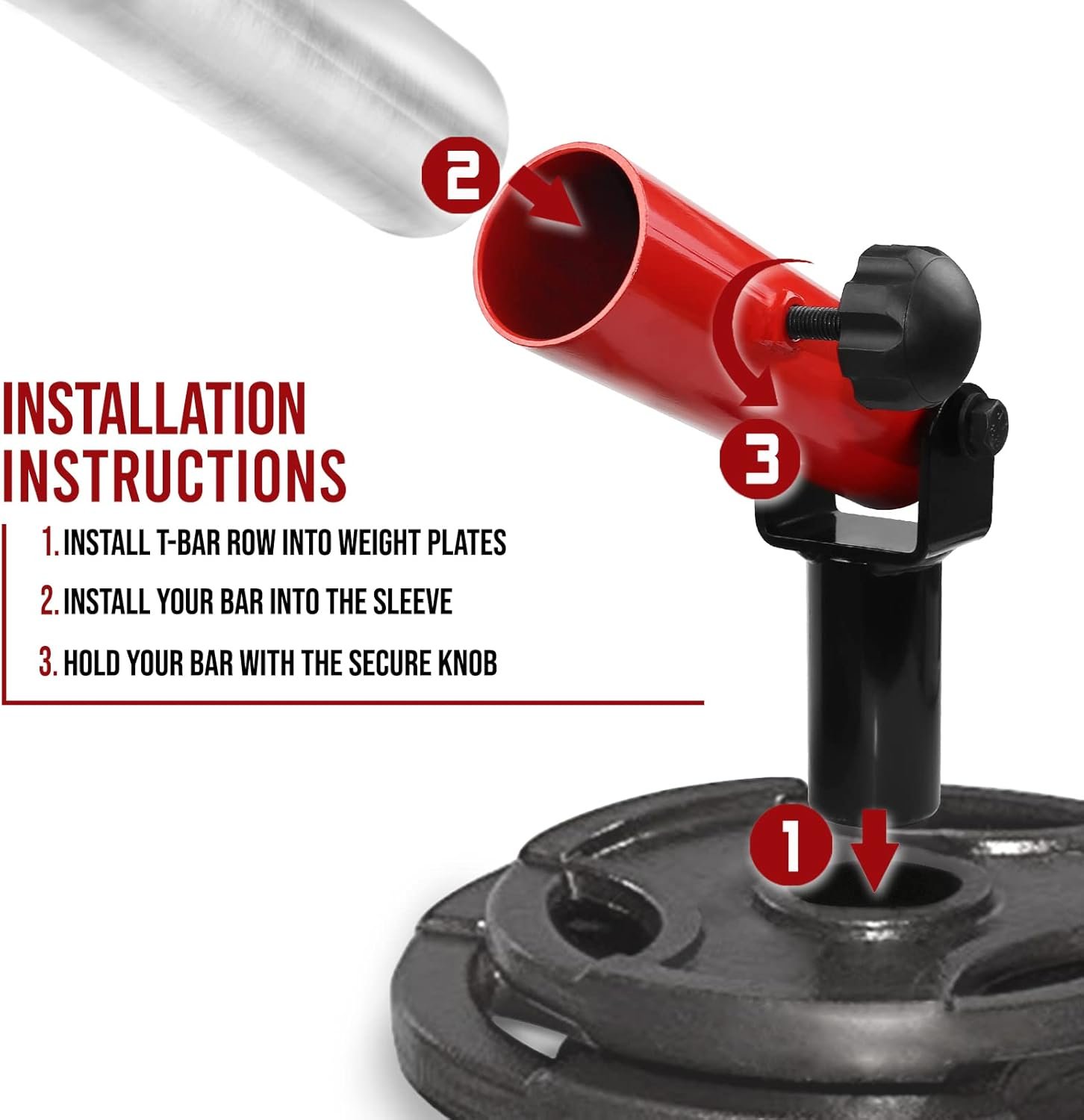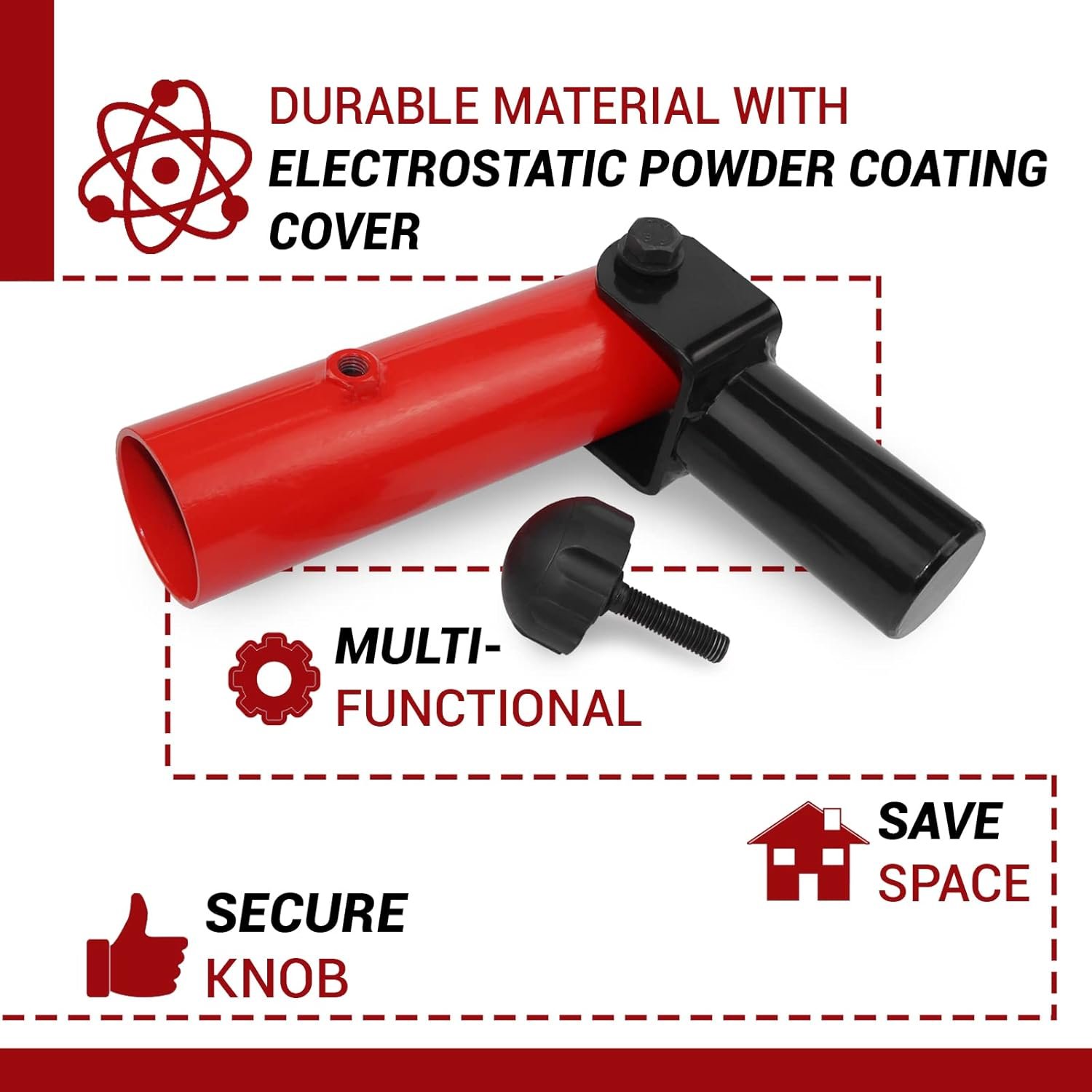 Our landmine squat attachment has two main parts: a pivot sleeve is made of thick steel and base post is of solid steel that gives enduring attachment and durability. It is designed with the secure knob that helps to lock bar tightly and ensure your safety during workout.
