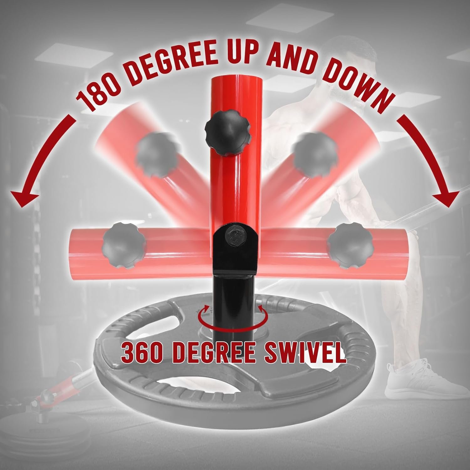 8” long pivot bar sleeve and 4” long base post fitting 2” Olympic bars and weight plates. Its highlight is the full 360 degree swivel and full range swivel up and down, so it gives you multi-directional workouts that impact on all the major muscles in your back, shoulders and the pulling muscles in your arms.