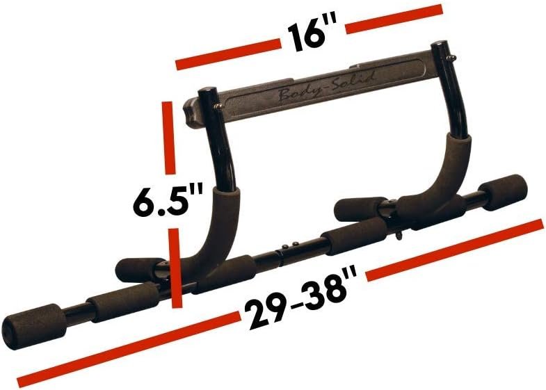 EASY INSTALLATION & PORTABLE: The Body-Solid Mountless Pull-Up/Push-Up/Sit-Up bar is designed for easy installation in any doorway. No screws or drilling required, protecting your door frames from damage.