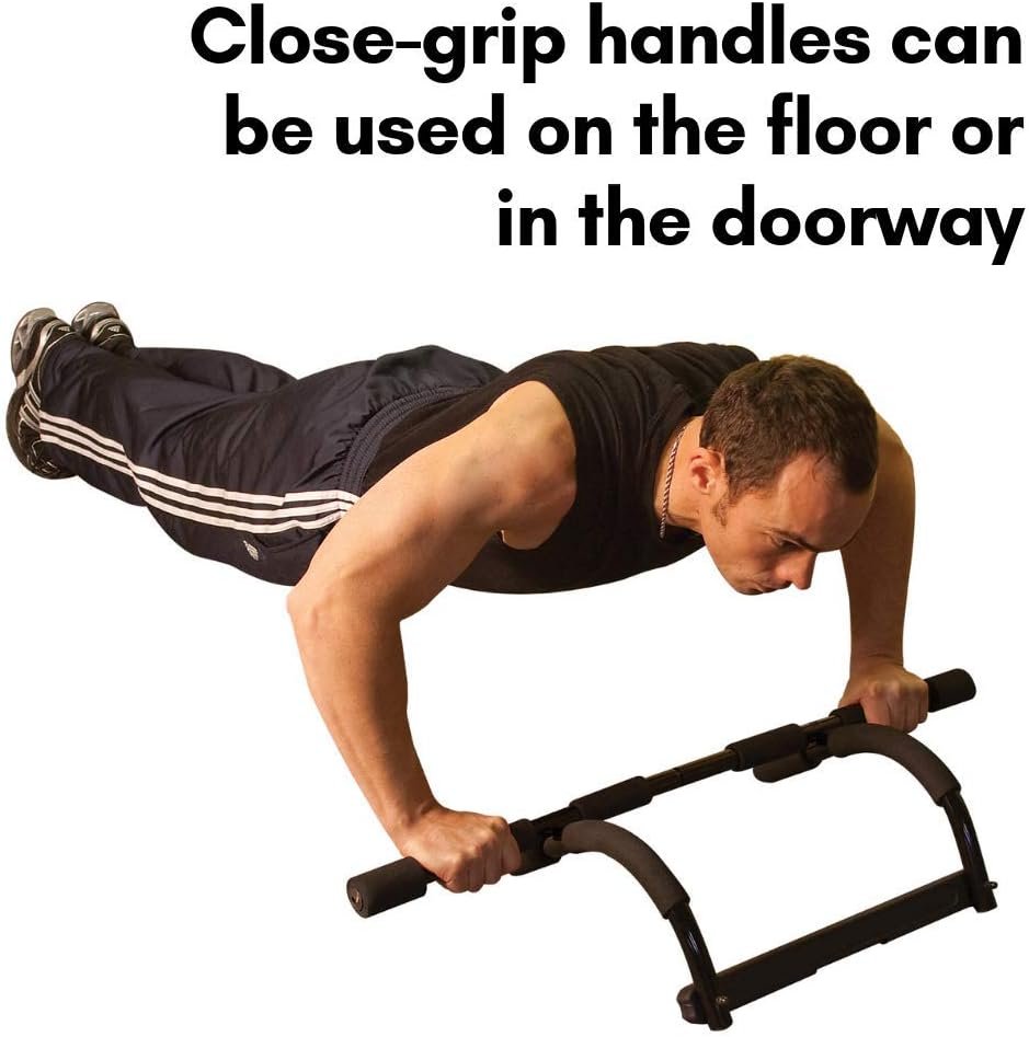 MULTIFUNCTIONAL & CONVENIENT: With two close-grip handles for different workout styles, this pull-up bar is perfect for home fitness exercises. It’s portable, and can be easily dislodged and removed from the doorway, making it the perfect addition to your home gym equipment. Measures 37″ x 16″ x 7″ and weighs 4lbs.