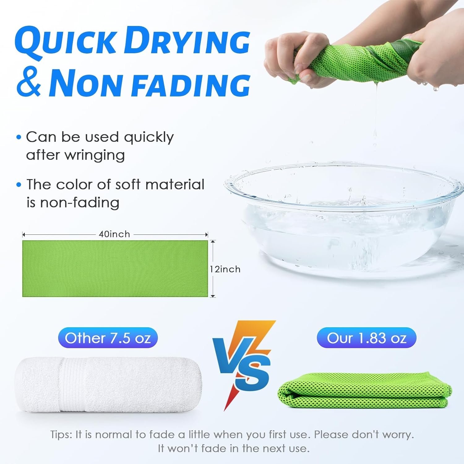 INSTANT COOLING: Soft and delicate fabric with mesh breathable helps you cool down quickly, just wet the chilling towel, wring it out and shake it around a bit to activate. The unique cooling system towel draws sweat away from your skin to keep you cool