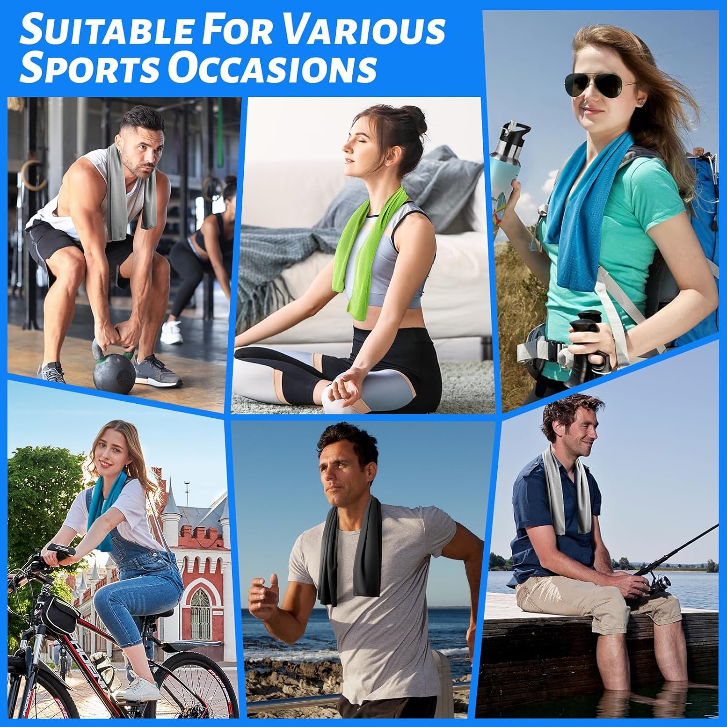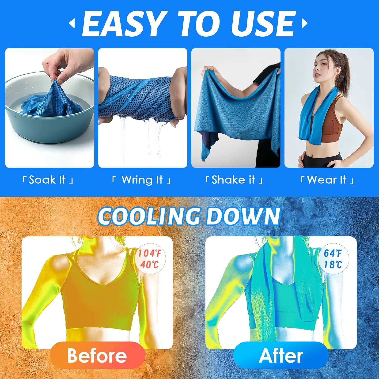 OUTDOOR AND SPORT: These cooling towels for hot weather to use for theme parks, music festivals, trip keep you cool when staying outdoors. Suitable for exercise both inside or outside. Cool down your body on hot summer for heatstroke prevention, fever
