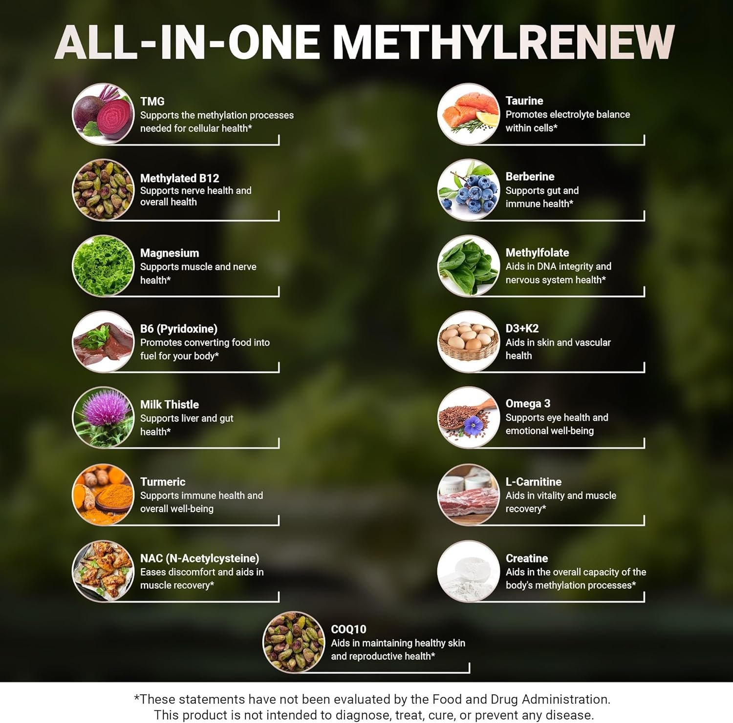 Trimethylglycine Supplement : Milk thistle extract with Nac supplement n-acetyl cysteine aids as a liver support supplement and overall wellness. Blend of vitamin D k2, vitamin B complex such as B 12 vitamin, and co q 10 supplement provides vitality making this product suitable as a mens vitamins multivitamin and women multivitamin. And the combination of turmeric curcumin supplement, burpless fish oil, dihydroberberine and magnesium citrate offers added support.