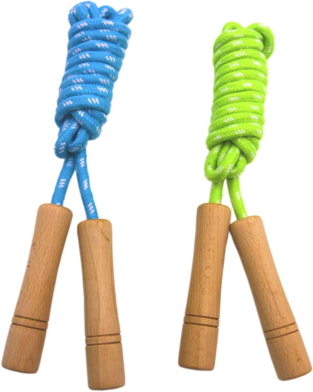 Cotton Jump Rope for Kids – Wooden Handle – Adjustable Cotton Braided Fitness Skipping Rope – Outdoor Fun Activity, Great Party Favor, Exercise Activity, Pack of 2