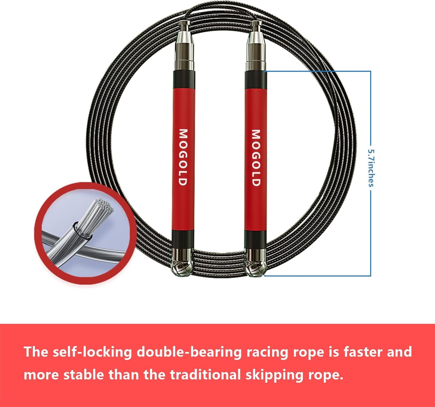 Steel strand rope-more durable even on unfriendly ground.no tangle during skipping2.0- 3.0 cable interchangeable ,lighter,faster