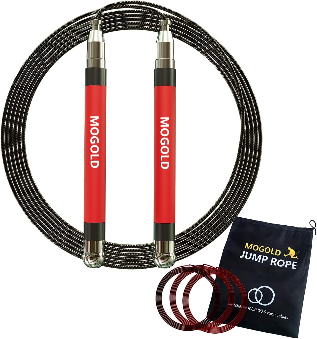 4 cables jump rope set for long-lasting With the MOGOLD T05 speed jumping rope set, you will receive:
