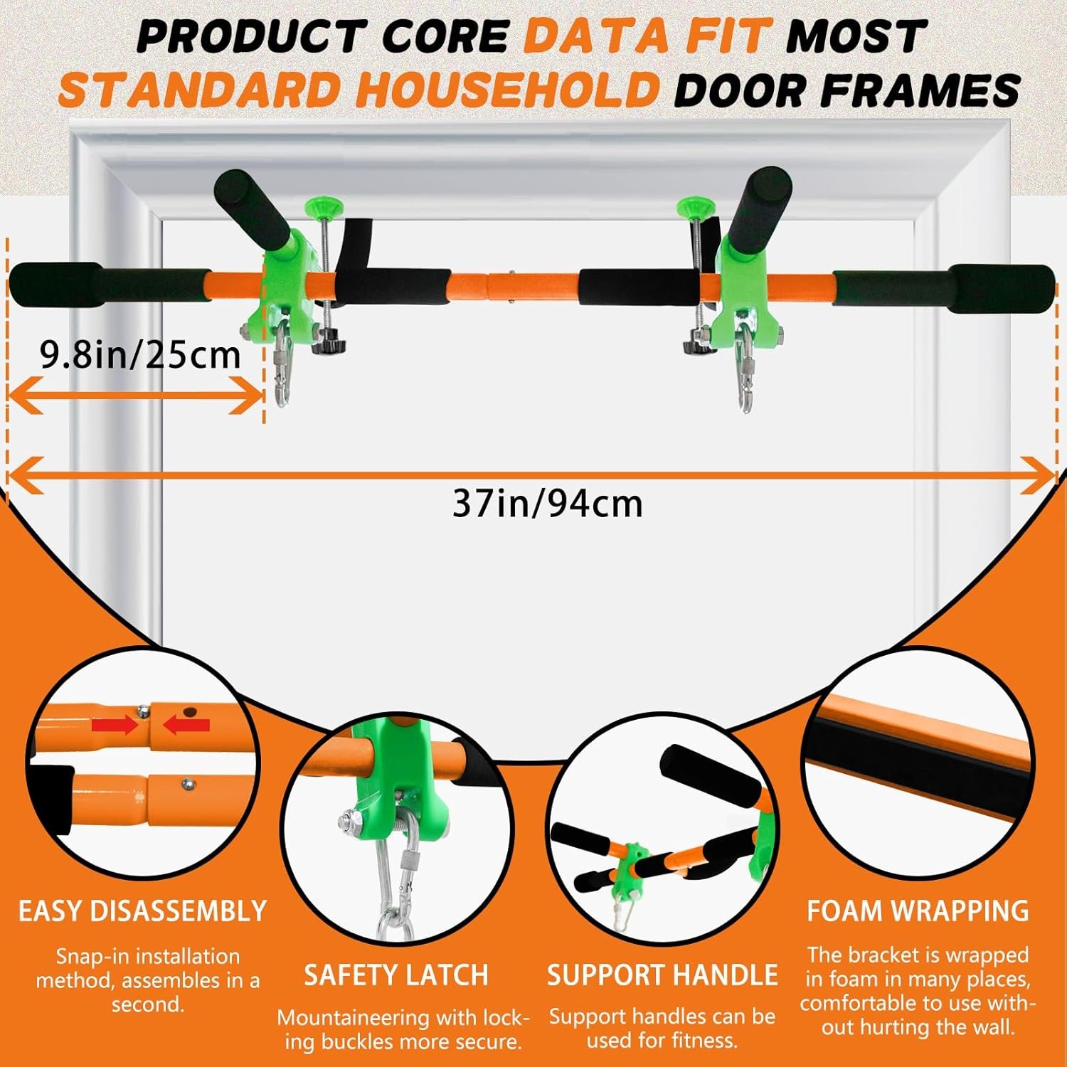 Door Swing for Kids,Indoor Pull up bar for Adults,Doorway Swing Kids with 4pcs,Indoor Doorway Gym Set for Kids and Adults-Sensory Swing (JS010007-OR)