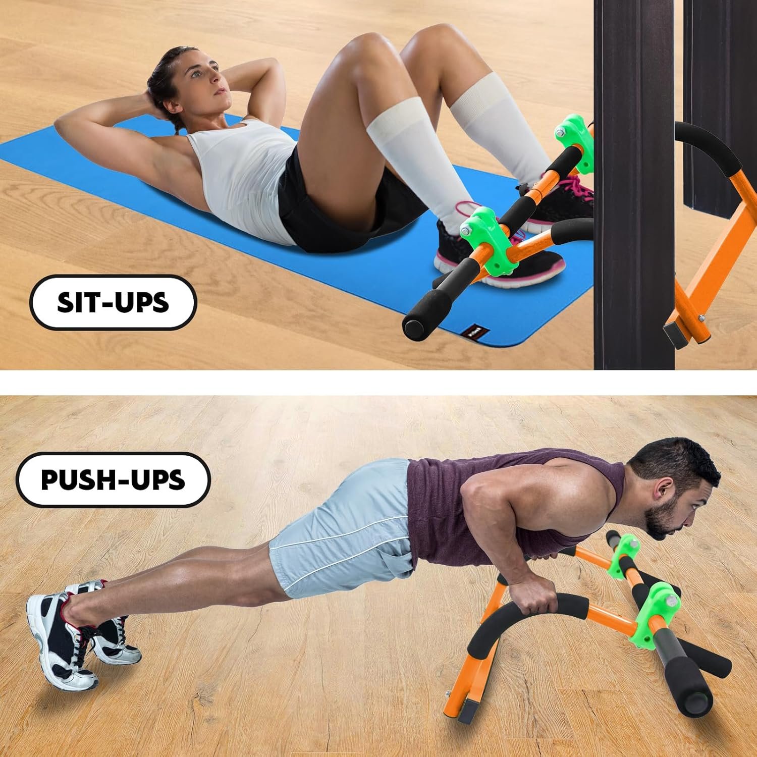 Let our pull up bar for door become your fitness assistant. You can install it on the door frame or use it on the ground (it is recommended to lay a blanket on the ground). Exercise the muscles and strength of multiple parts of the body through grasping, moving forward, upward, supine, and prone movements.