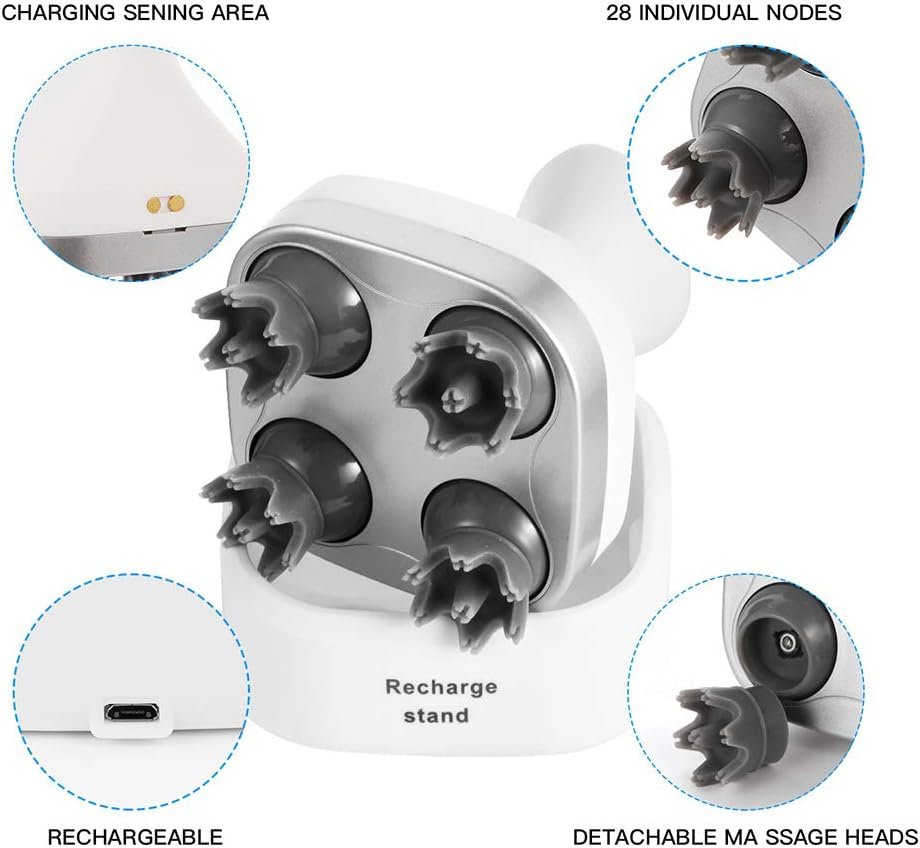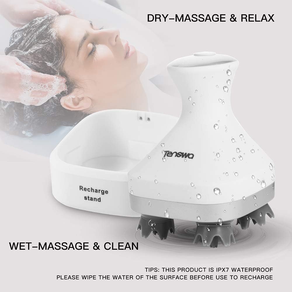 Professional Scalp Massager:Tenswa scalp massager has four massage heads, each with 28 separate nodes that rotate clockwise and counterclockwise, mimicking the action of four fingers squeezing the head to deeply relax the scalp, massage acupuncture points on the head, relieve headaches, improve sleep, and accelerate hair growth