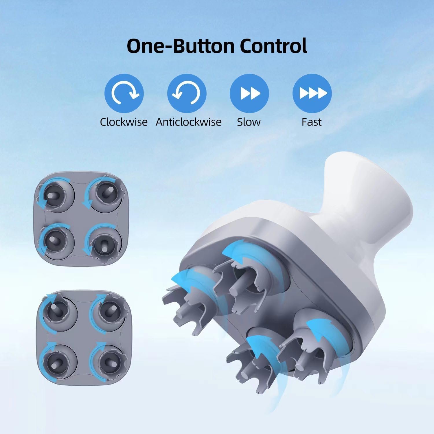 Multiple modes adjustable: The multi-function electric head massager has 4 modes, including 6 massage methods such as opening, closing, pushing, pulling, kneading, and clawing.With a comfortable grip, there is no need to worry about hair entanglement, excessive force, and other issues.