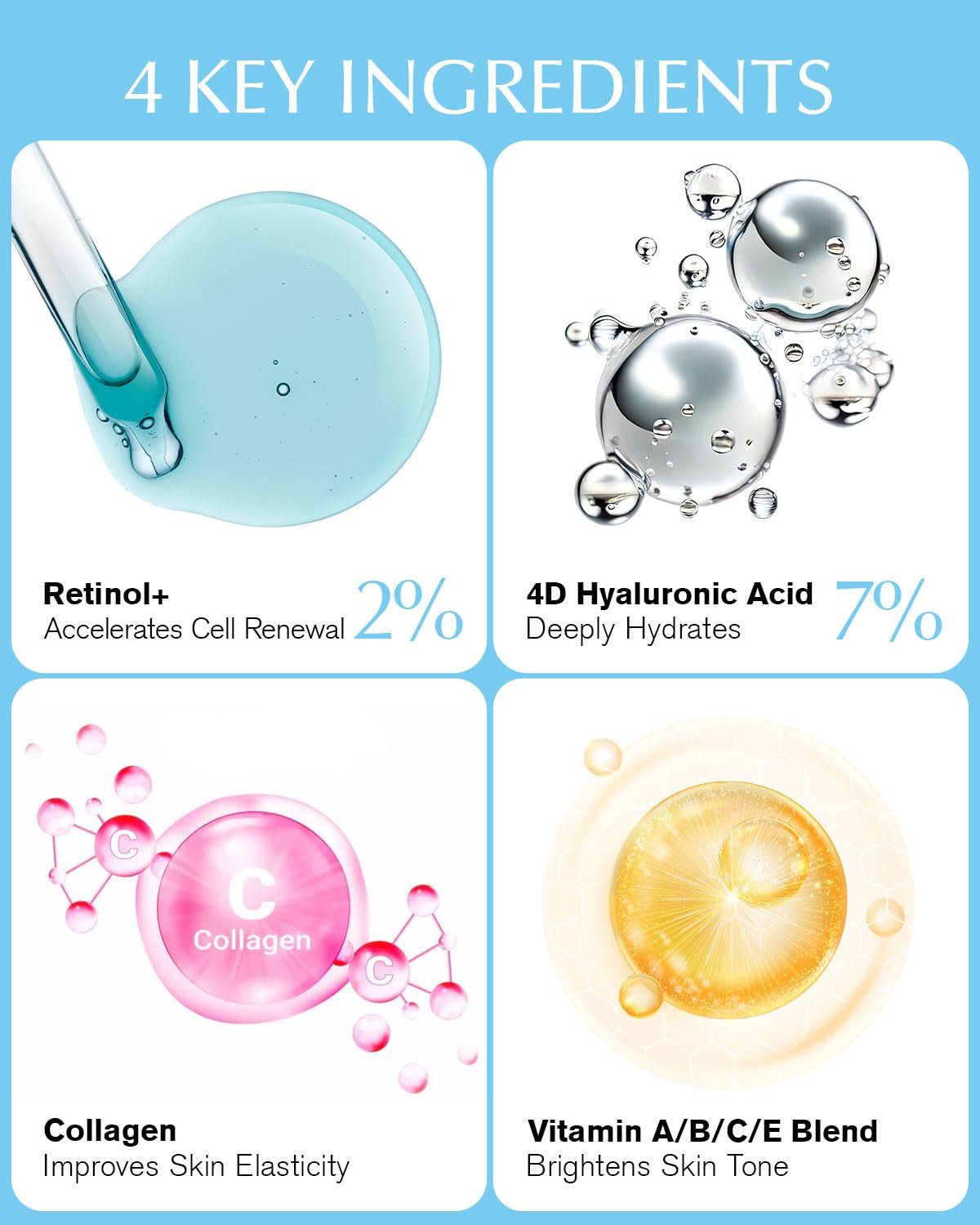 Advanced Anti-Aging Formula: An anti wrinkle face cream with 2% pure retinol suitable for daytime and nighttime use. It combats fine lines and fades deep wrinkles, including crow’s feet, forehead, and cheek wrinkles.