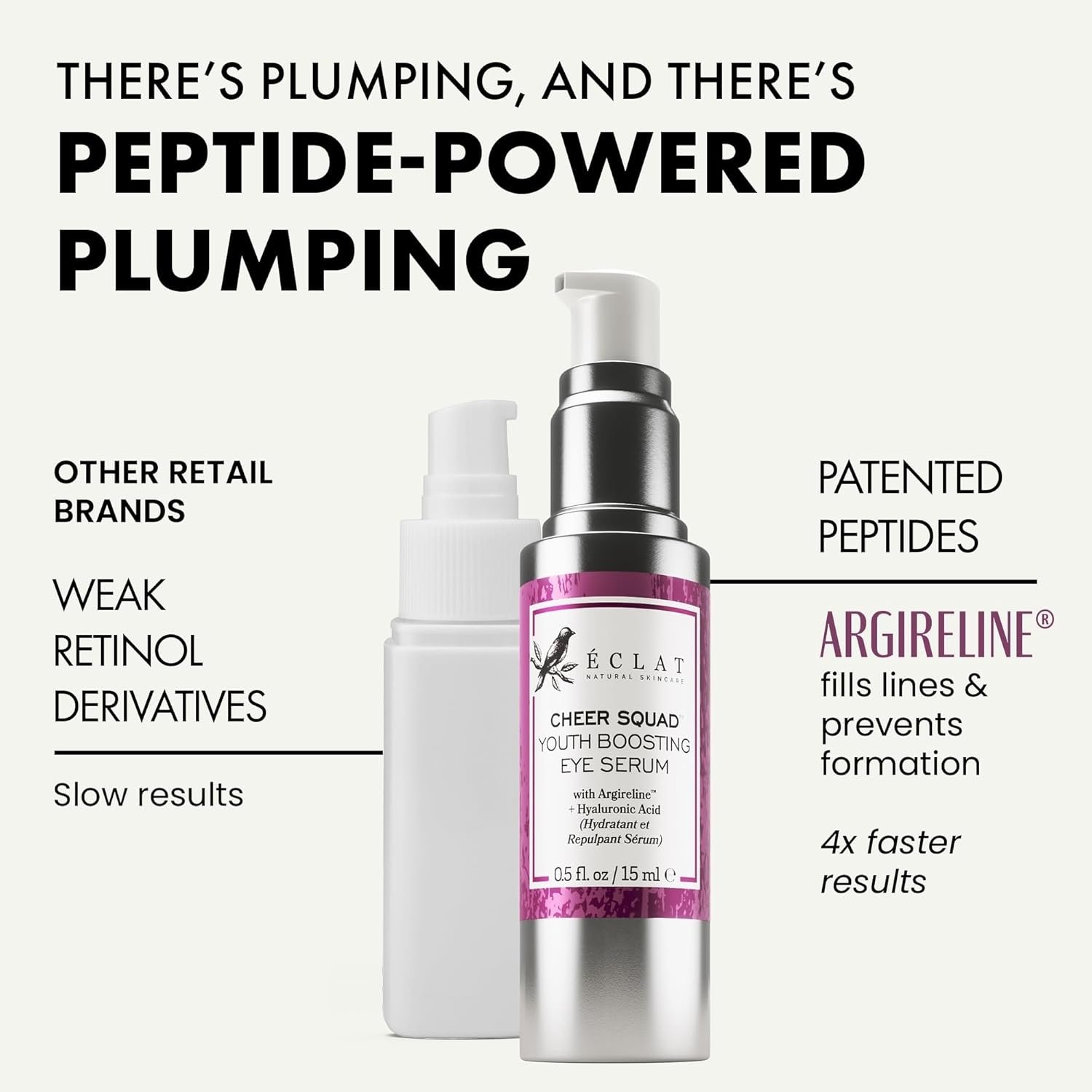 𝗚𝗘𝗧 𝗬𝗢𝗨𝗡𝗚𝗘𝗥-𝗟𝗢𝗢𝗞𝗜𝗡𝗚 𝗘𝗬𝗘𝗦: With Argireline & Oligopeptide-1, this eye serum is your secret weapon against dark circles, puffiness and crow’s feet. These patented peptides “freeze” the appearance of wrinkles and visibly smooth skin.