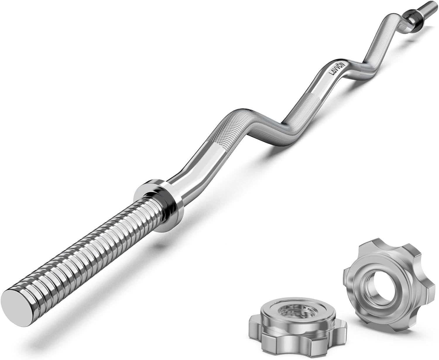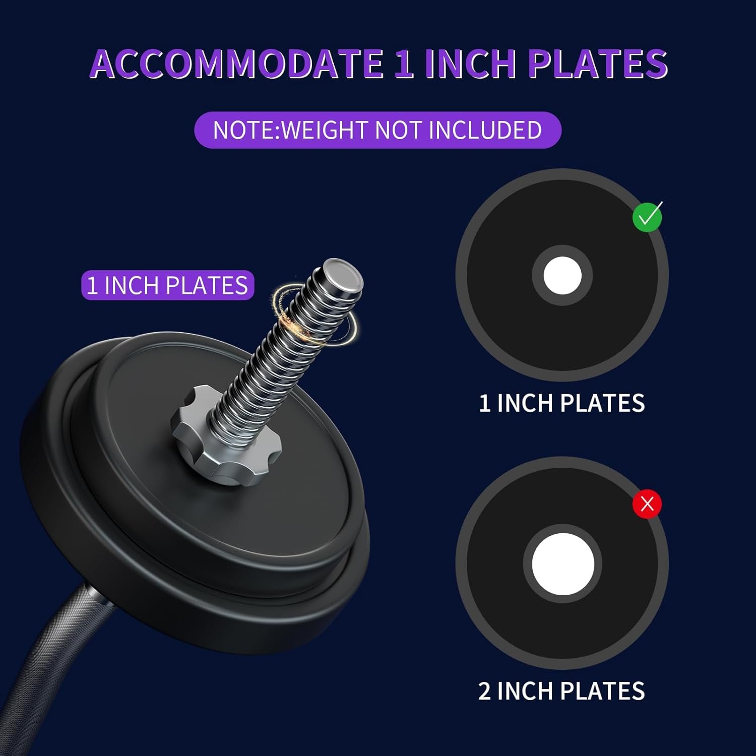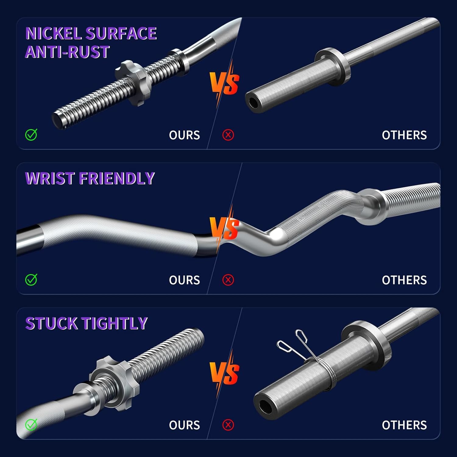 HEAVY-DUTY CHROME STEEL: Our steel rods feature hardened nickel plating for good corrosion and oxidation resistance, Comes with 2 pcs Anti-slips swivel steel clamps to hold 1″ weight plates.