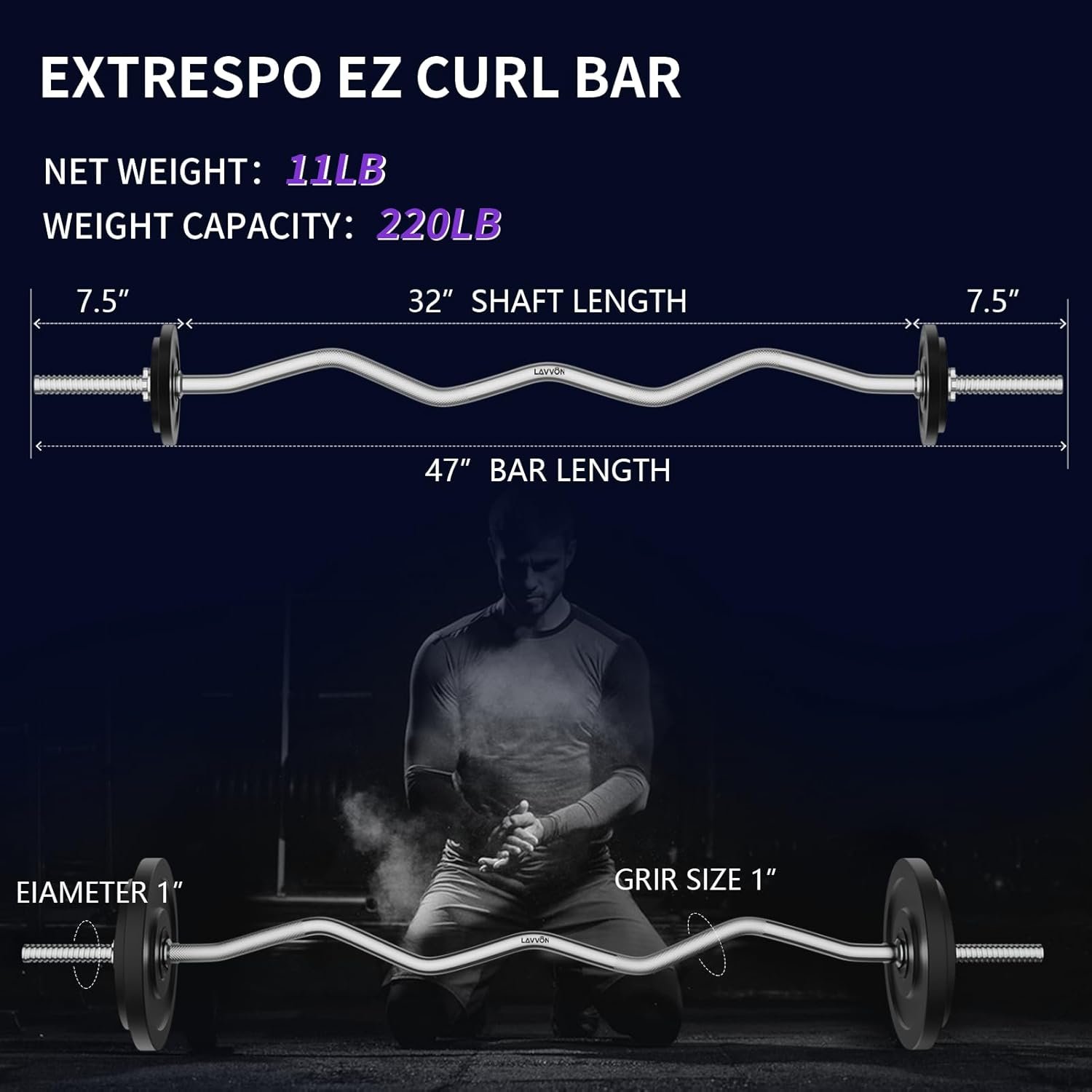 SUPERIOR SPECS: The length of the olympic EZ bar is 47 inches, Compatible with 2″ Olympic boards. High quality heavy duty solid steel, has the characteristics of high load-bearing capacity and flexibility, Our strength training bars can hold 220lbs weight capacity.