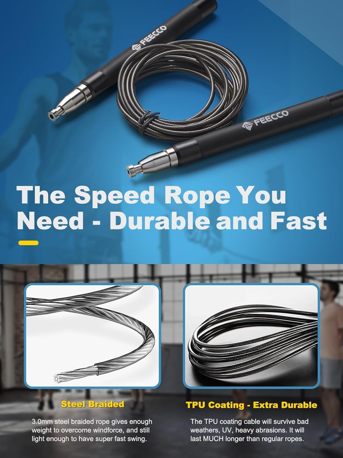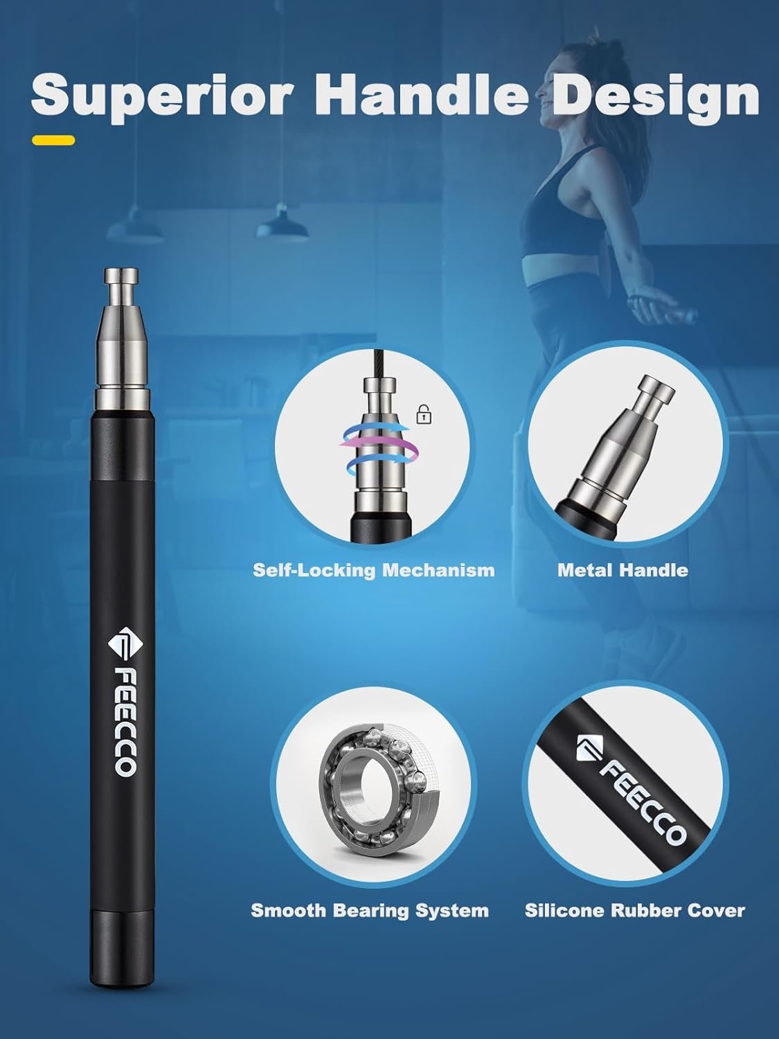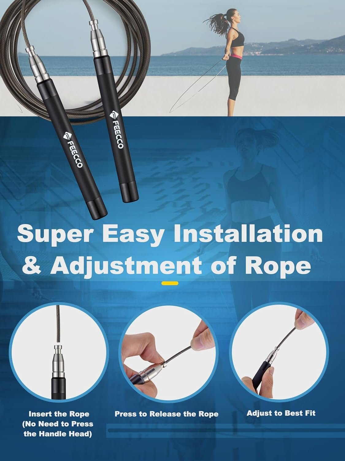 Screw-Free Design for Hassle-Free Workouts – Say goodbye to loose screws that fall out just as you’re getting your groove, the FEECCO Agile Pro speed rope is super easy to install the rope, and adjust the length to suit your height.