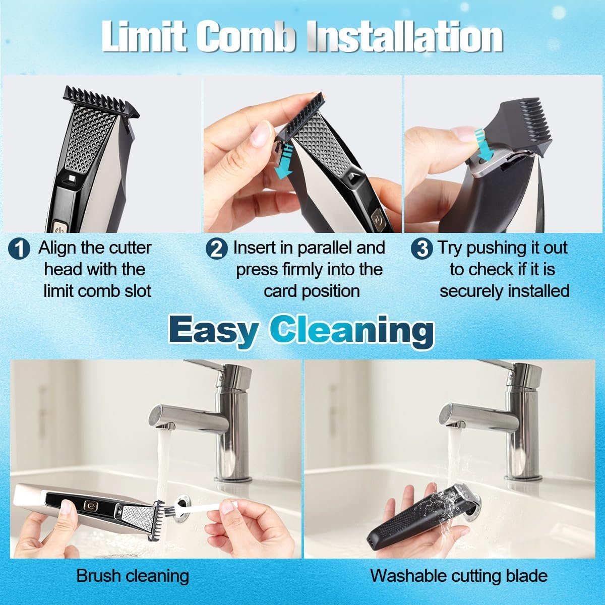 ✅【Multifunctional Cleaning Capabilities】This all-in-one beard and hair trimmer for men features a blade system that not only makes trimming beards and hair cutting effortless but also allows for easy disassembly and thorough cleaning. With included cleaning brush and oil, maintaining peak performance of your hair clippers for men has never been simpler, ensuring hygiene and longevity for both your beard trimmer and hair trimming tool.