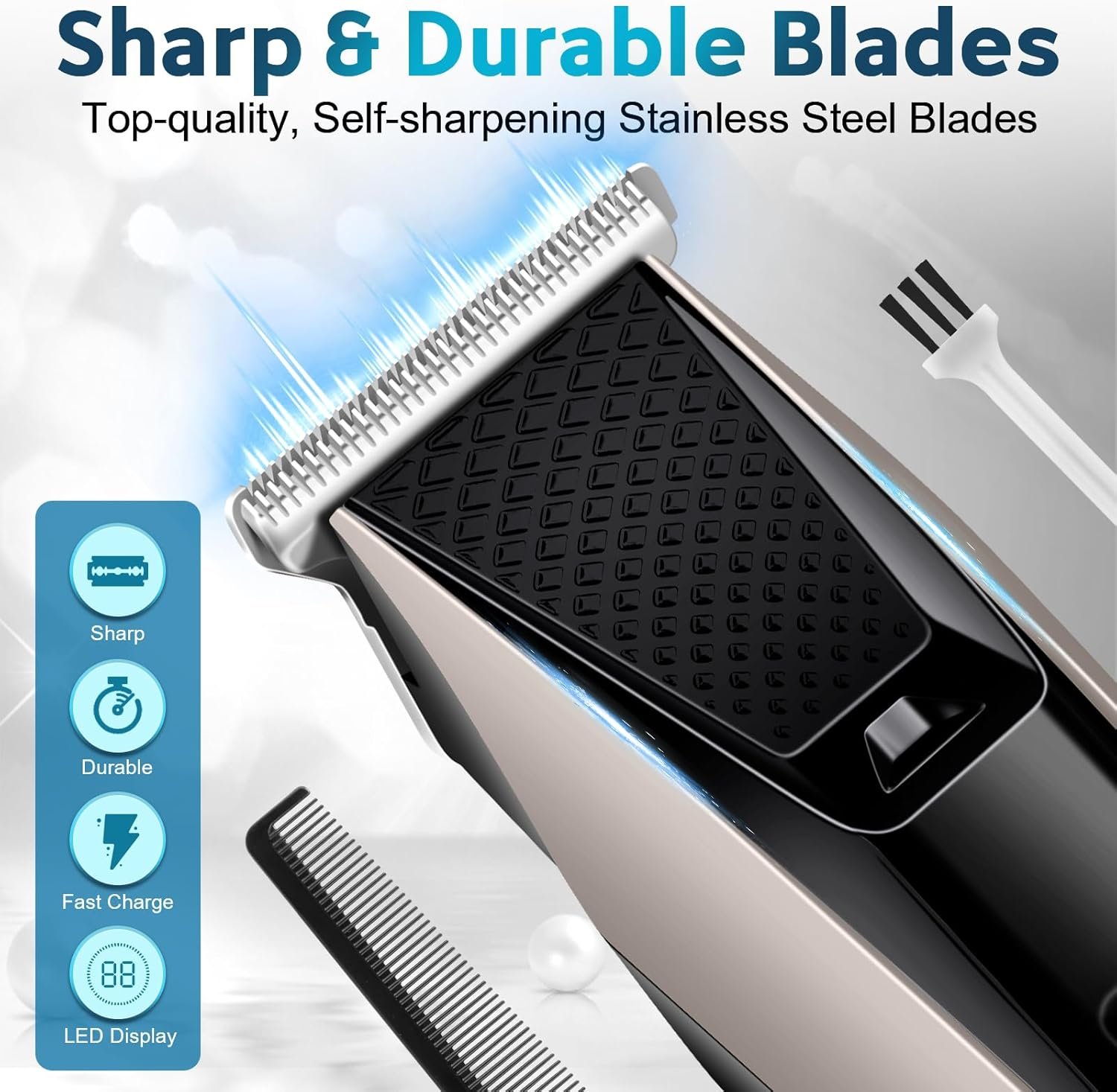 ✅【Sharp & Durable Blades】Our mens grooming kit features top-quality, self-sharpening stainless steel blades that maintain their edge over extended use. The replaceable blade system allows for easy maintenance and extends the lifespan of your hair cutting tools for men, guaranteeing consistent performance throughout countless grooming sessions.