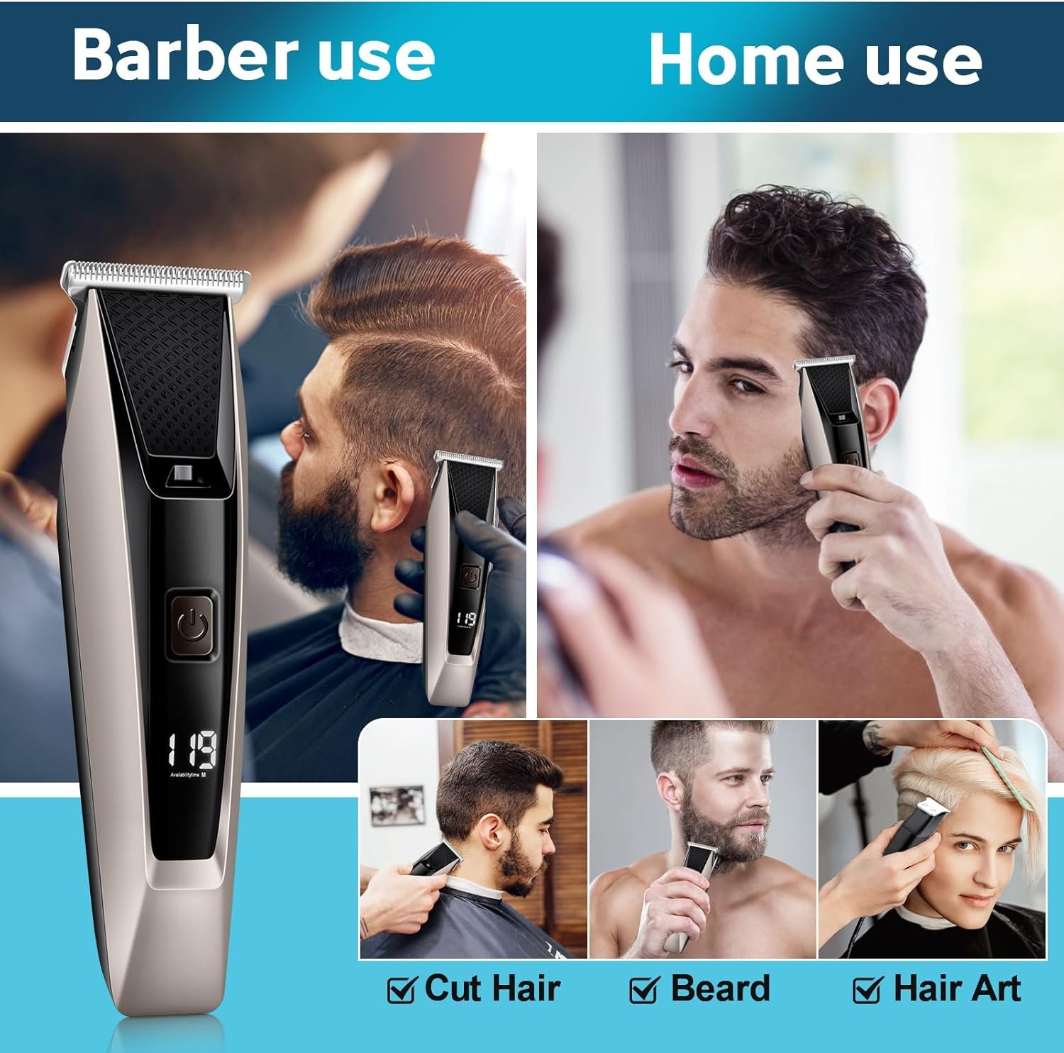 ✅【Comfort-Driven Ergonomic Design】Engineered for optimal comfort and control, this mens hair clippers and beard trimmer sports an ergonomic design that contours perfectly to your hand, reducing fatigue during prolonged use. The lightweight build and textured grip minimize slippage, ensuring maximum stability as you navigate through various haircutting and trimming tasks. The thoughtful construction makes it an indispensable addition to your hair cutting tools for men arsenal.