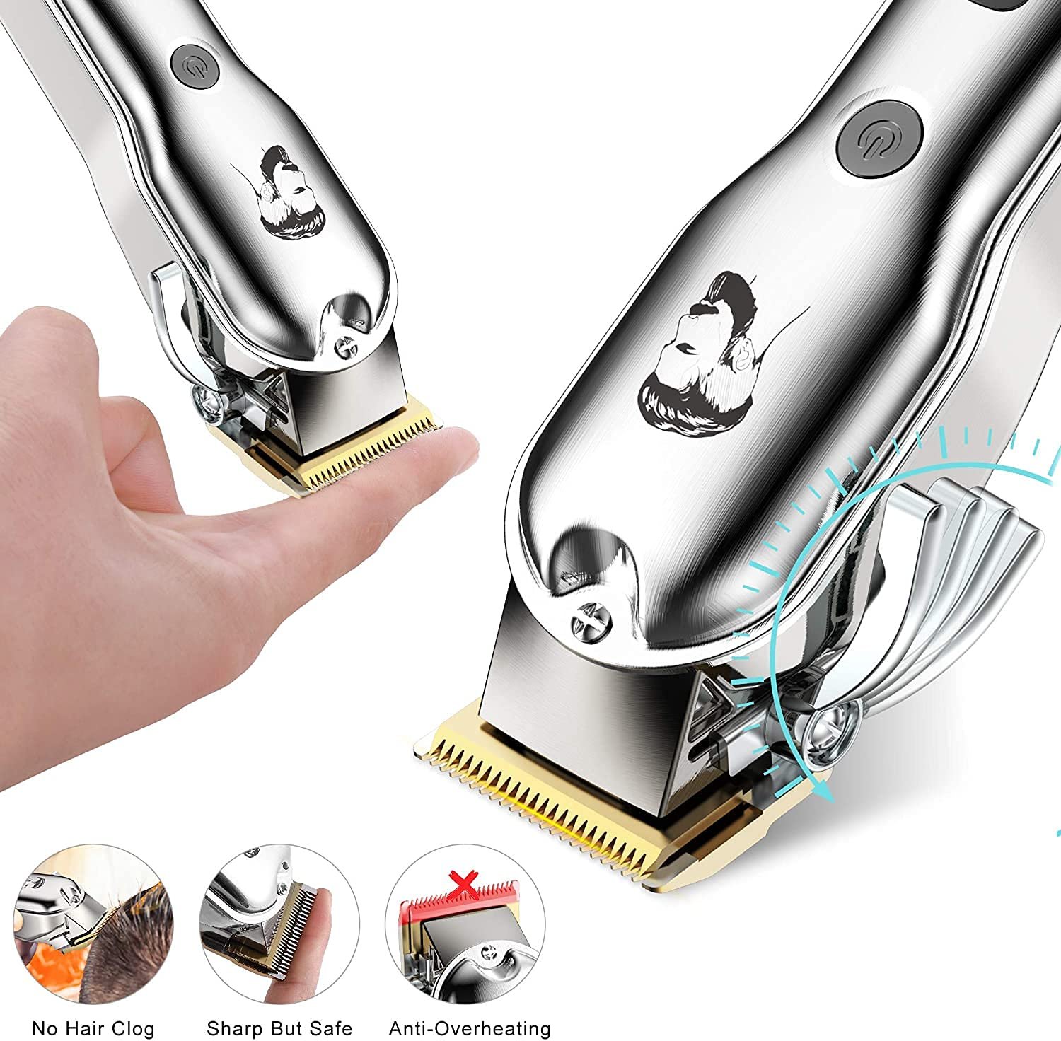 High carbon steel blade:The blades are precision ground to stay sharp longer, provide high performance precision to achieve any style for long lasting durability.The teeth on the blade are tightly line up with each other to remove hair with no snagging or pulling, offering an effective haircut. The professional hair clipper is good for home or barber hair cutting