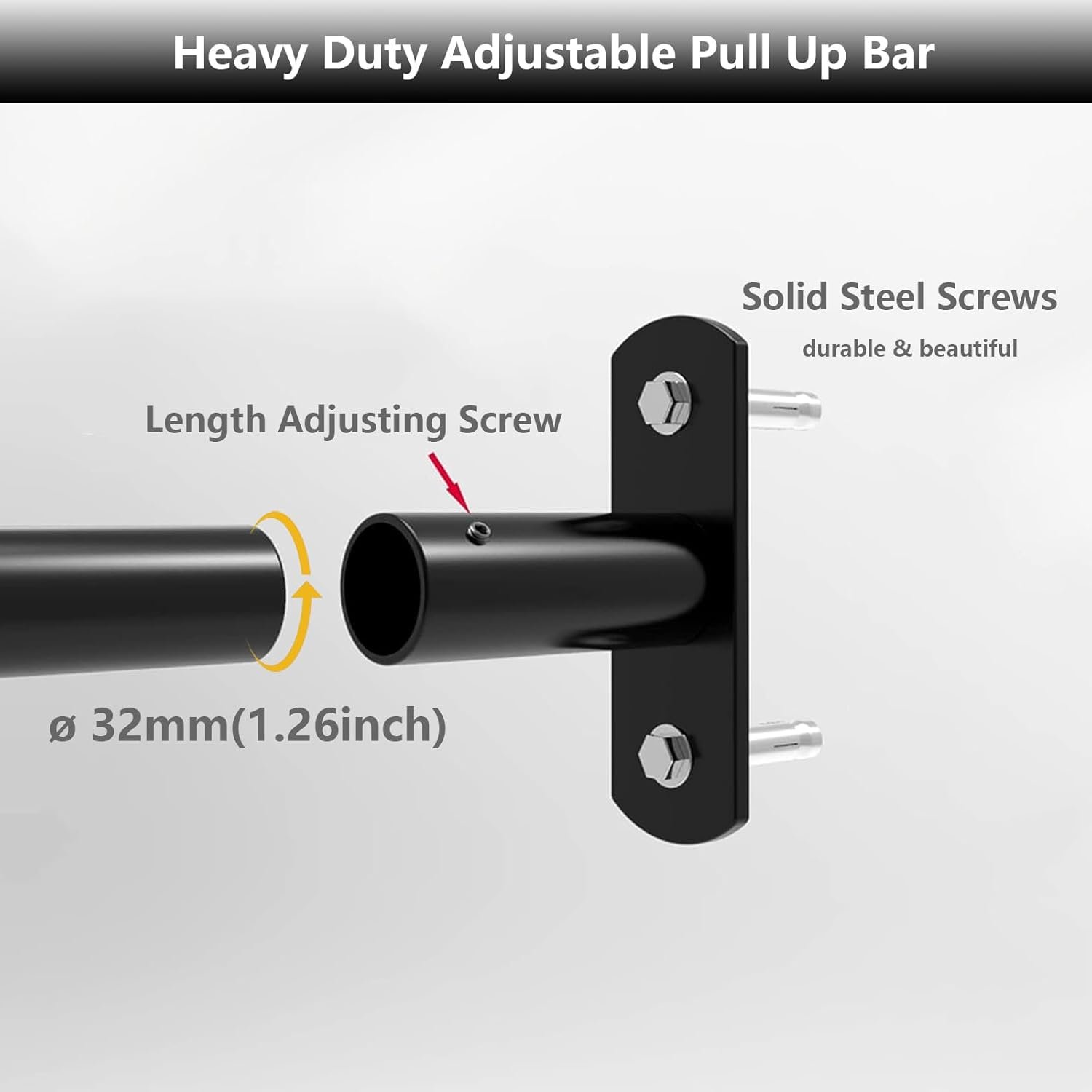 Not only is our pull up bar functional, but it’s also aesthetically pleasing. The durable and beautiful design, with a diameter of 32mm (1.26 inch), adds a touch of elegance to any doorway.