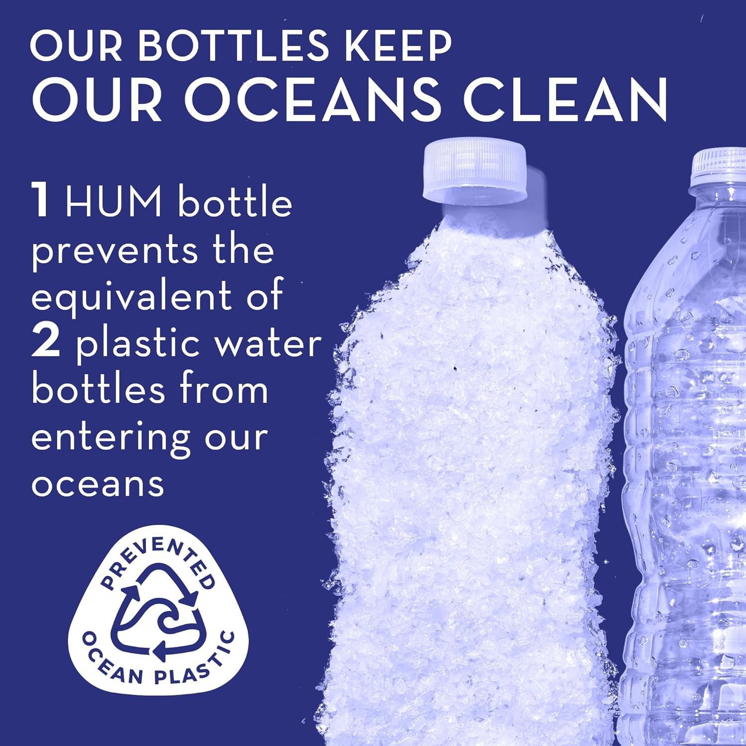 We want wellness for the planet too. Every 1 HUM post consumer bottles prevents the equivalent of 2 – 4 plastic bottles from entering our oceans.