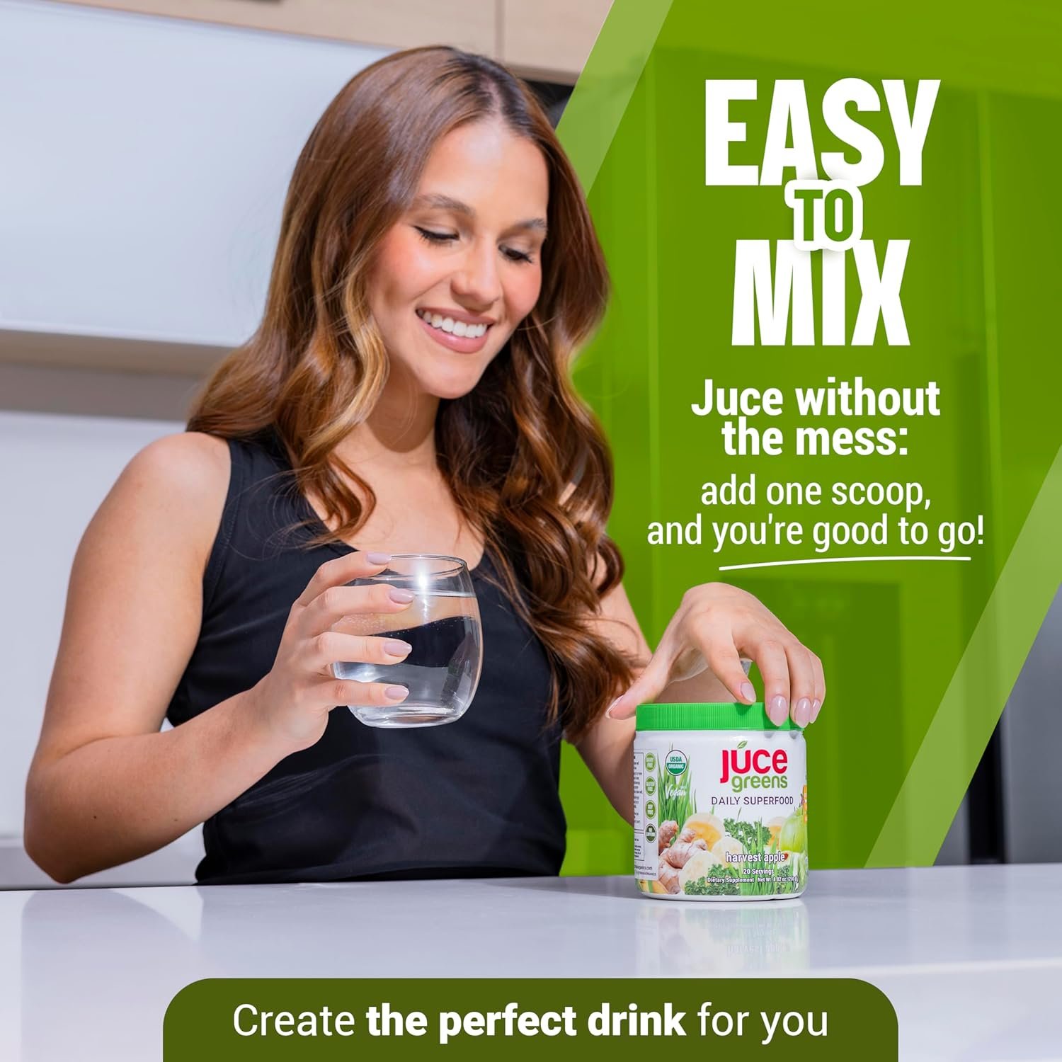 PURE & DELICIOUS : Our greens and superfoods blend is USDA Certified Organic, Vegan, & Non GMO and contains no Dairy, Soy, Gluten, Gelatin, or Artificial Ingredients. It’s bursting with apple flavor and blends easily into juices, smoothies, and protein shakes.