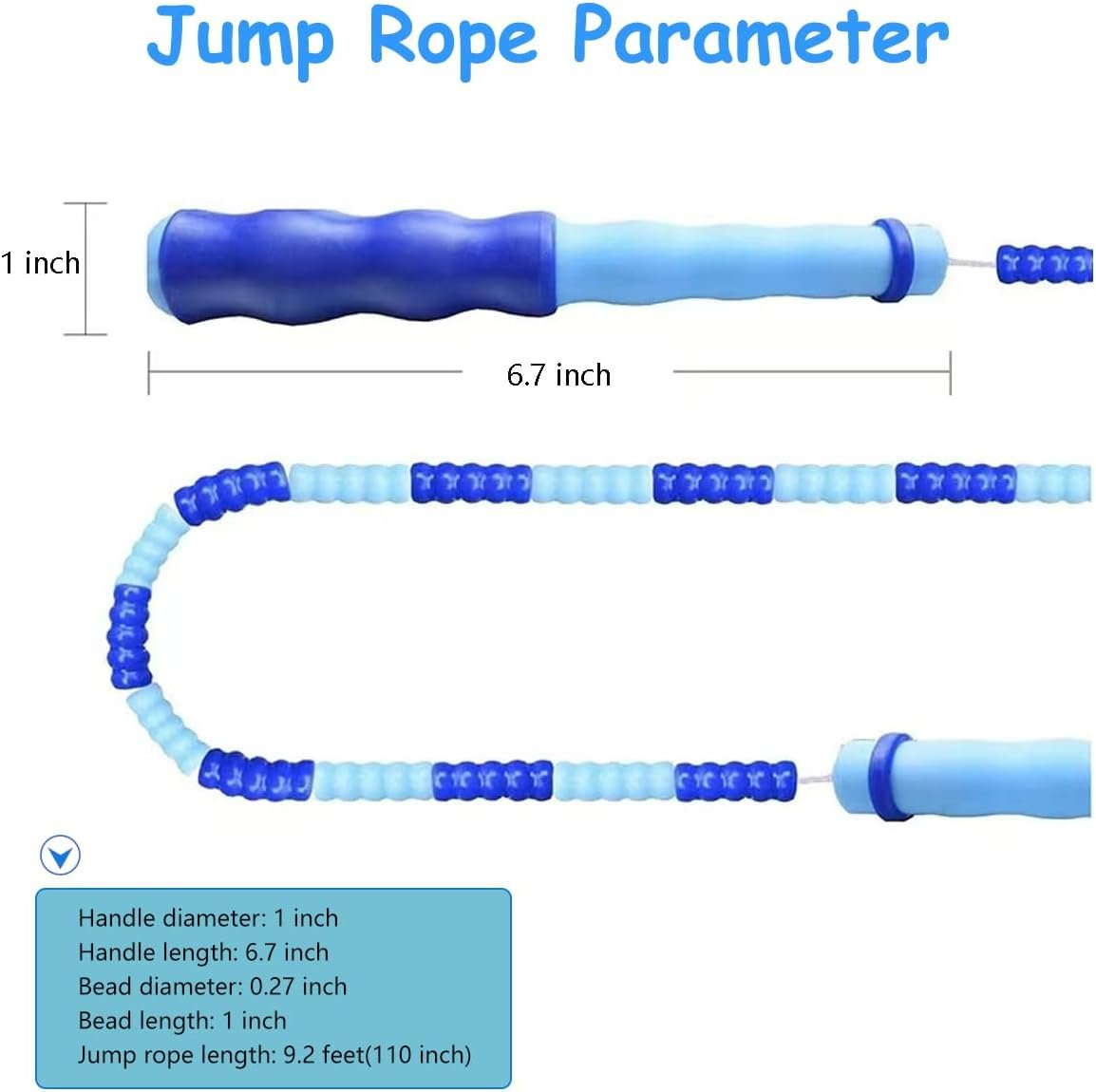 ✅【DURABLE JUMP ROPE】 High quality,tough and durable soft PVC beads is strong and wear-resistant, no damage to the floor when jumping rope. The bright color beads also fade resistant.With the braided nylon cord, this kids jump rope is designed to be tough.