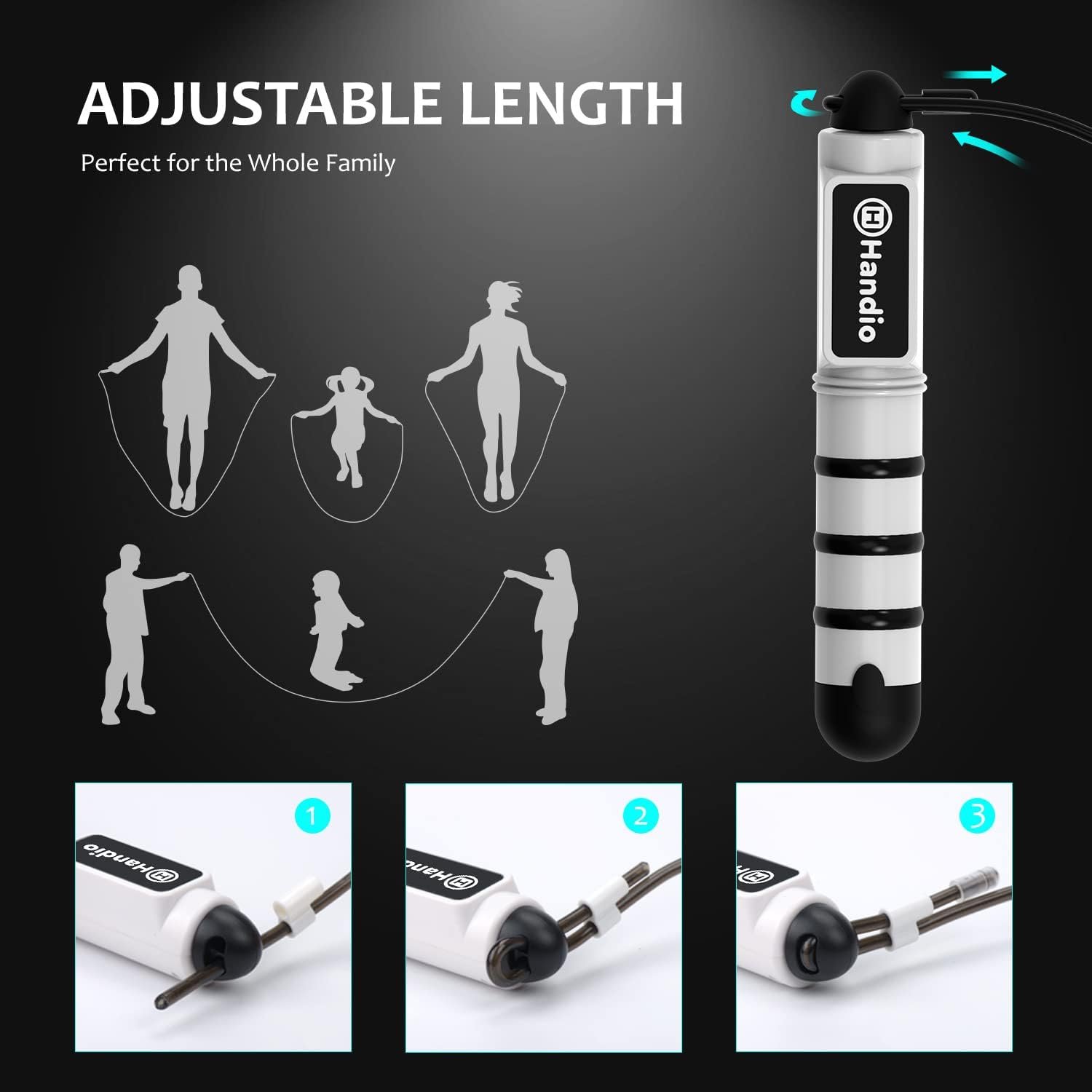 【Durable and Adjustable Length Steel Rope】Durable steel rope protected by premium PVC sheathing to avoid cracking or breaking. This rope is built to last. This jump rope is adjustable and can be adjusted quickly according to your height. Suitable for both adults and children
