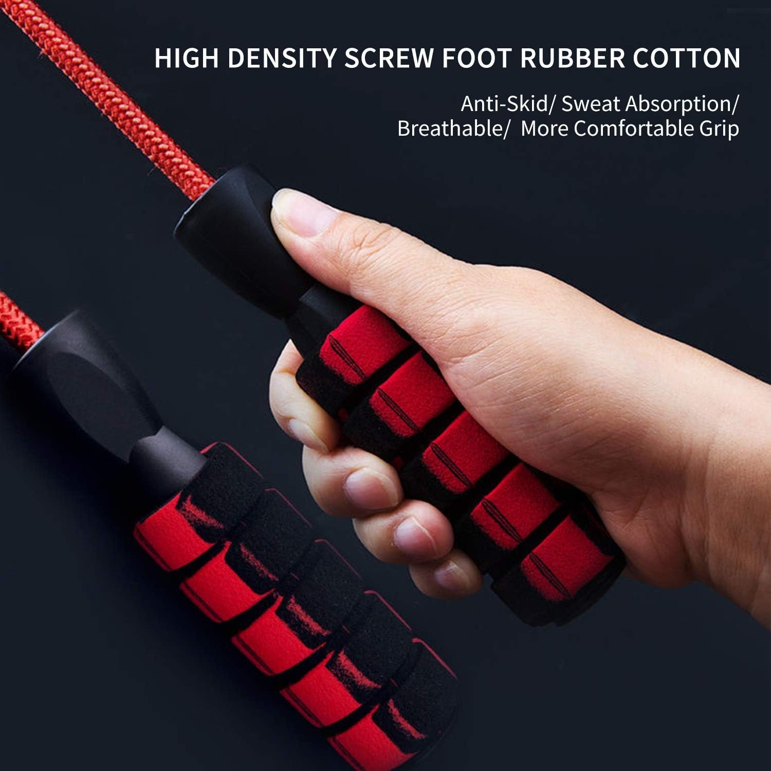 Comfortable & No More Tangling – The light weight ergonomic handles are made of memory foam, soft and comfortable, 6.1 inches long and 1.38 inches in diameter. High quality double ball bearings system avoids the twisting or winding like other fitness ropes, ensure smooth and rapid speed rotation.