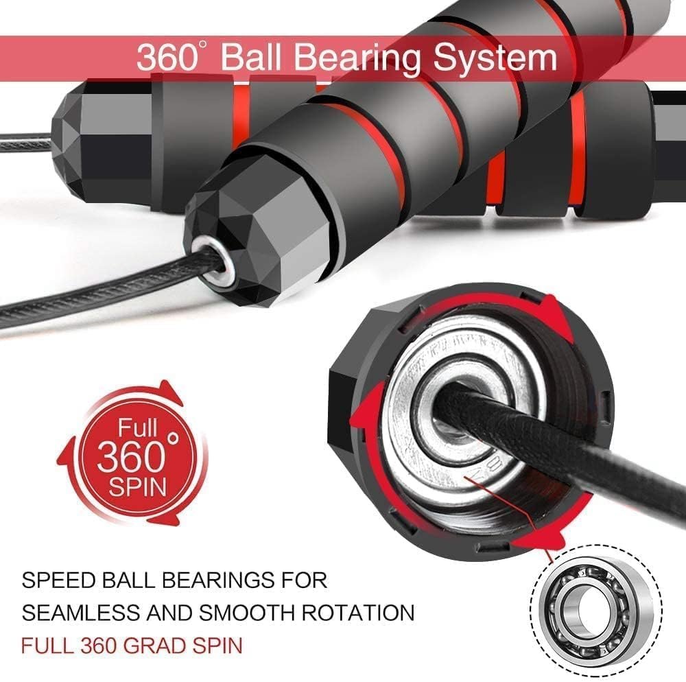 【Anti-Slip&Soft Handles Jump Rope】: This Skipping Rope is with two soft handle, made of Anti-slip soft EVA memory Foam material and tangle free ball bearing system, feel more comfortable to hold in hand and soft to load your hand strength.Ball bearing system which is a high speed rope for exercise.