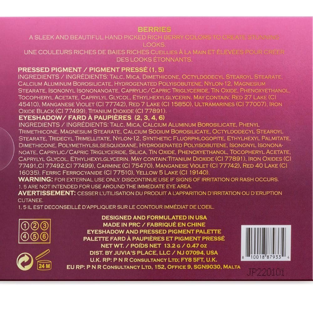 HOW TO APPLY: Dip your brush into the palette, tap off excess, or pack the brush for intense pigmentation. Customize your look by opting for a bold color or a soft look. The Berries Palette is not intended for use around the immediate eye area.
