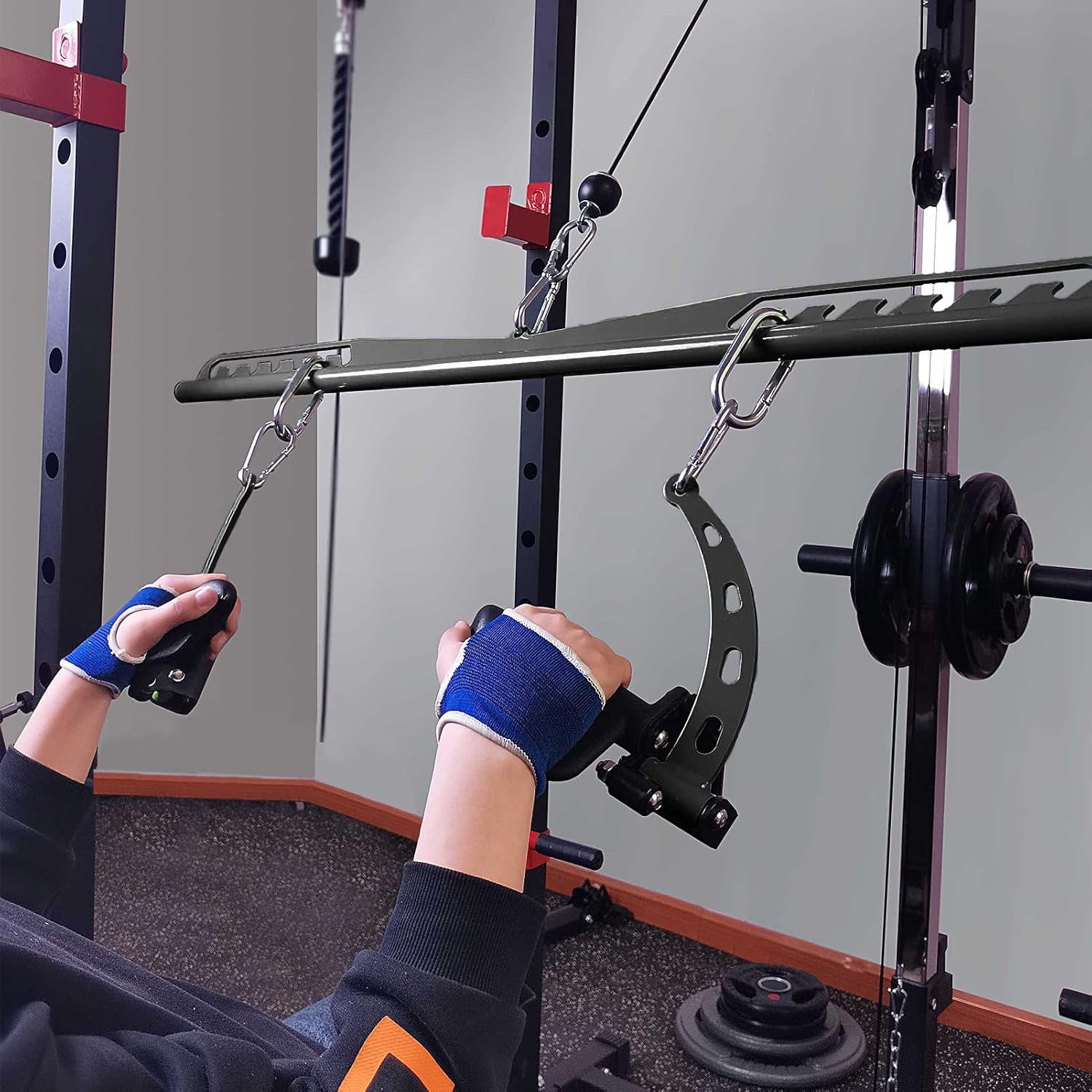 High Quality: Our lat pull down bar attachments are made of high quality steel. The rubber coating for the spreader bar is very thick, not easy to break, provides ergonomic & secured grip during gym workout.
