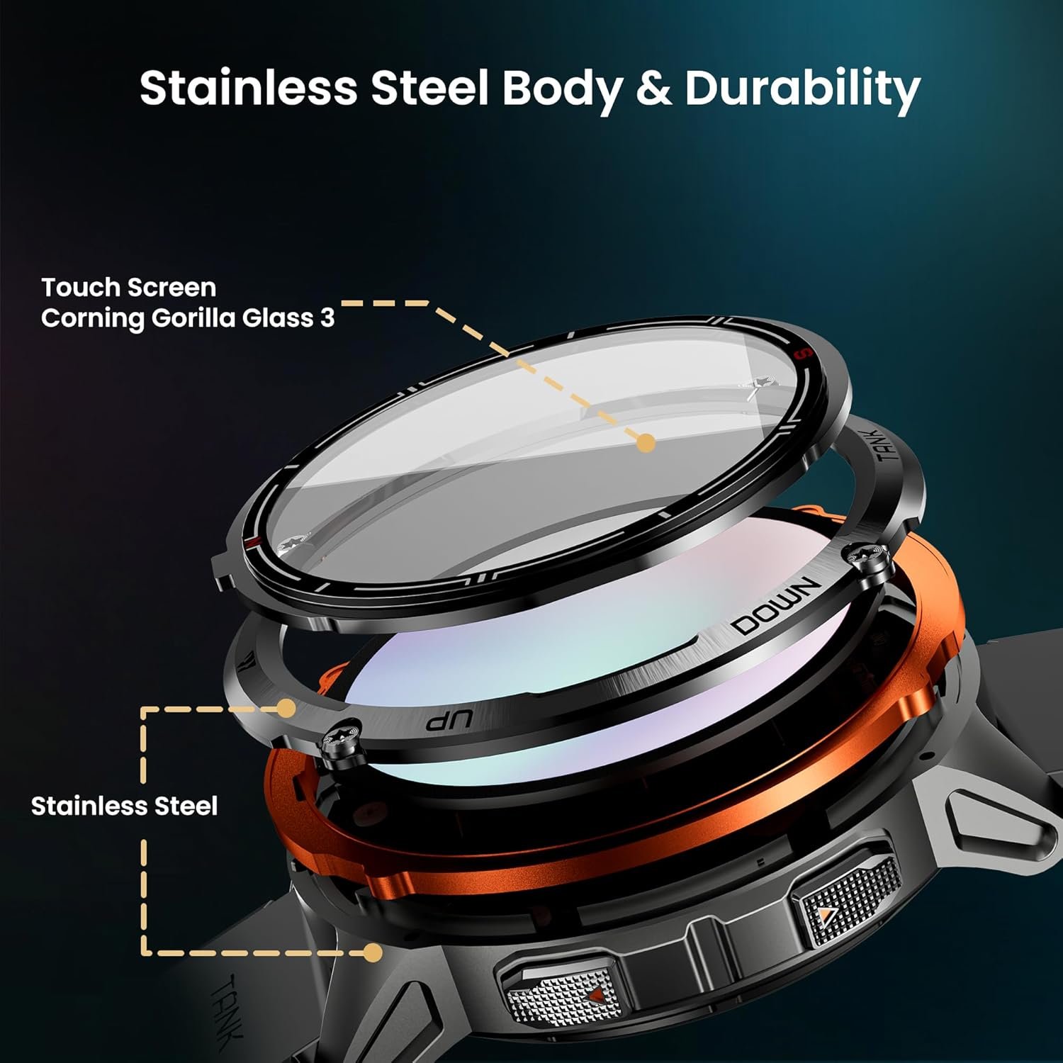 ➤【Full Stainless Steel Unibody & Gorilla Glass】KOSPET T3 Ultra 2 Men’s Smartwatch with a unibody stainless steel case, boasts a 1.43″ 3rd generation Corning Gorilla 9H double-layer glass display. The overall sports charm and casual business aesthetics make it highly resistant to scratches, drops, and polishing. It remains unfazed by any kind of wear and tear, falls, or collisions in daily life.