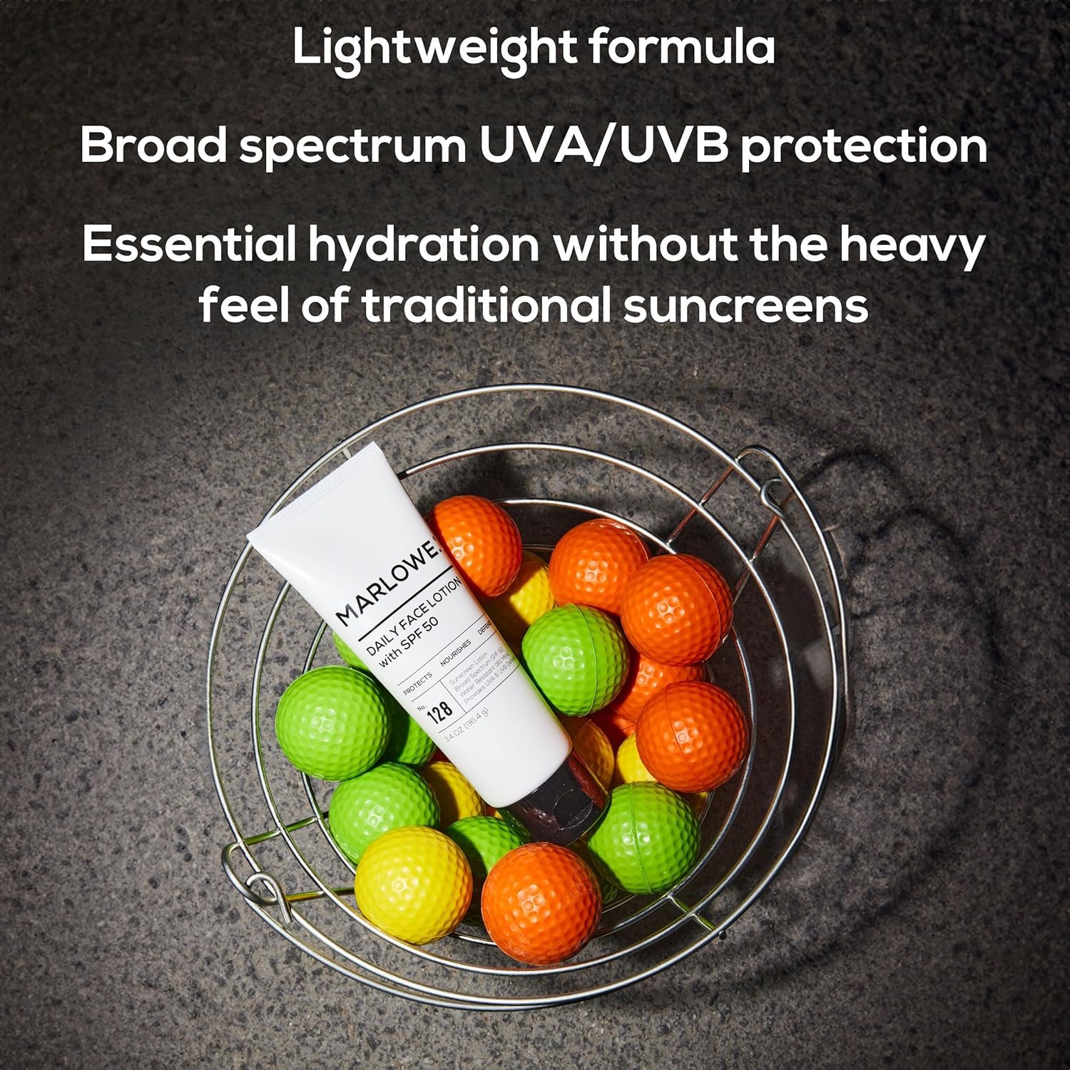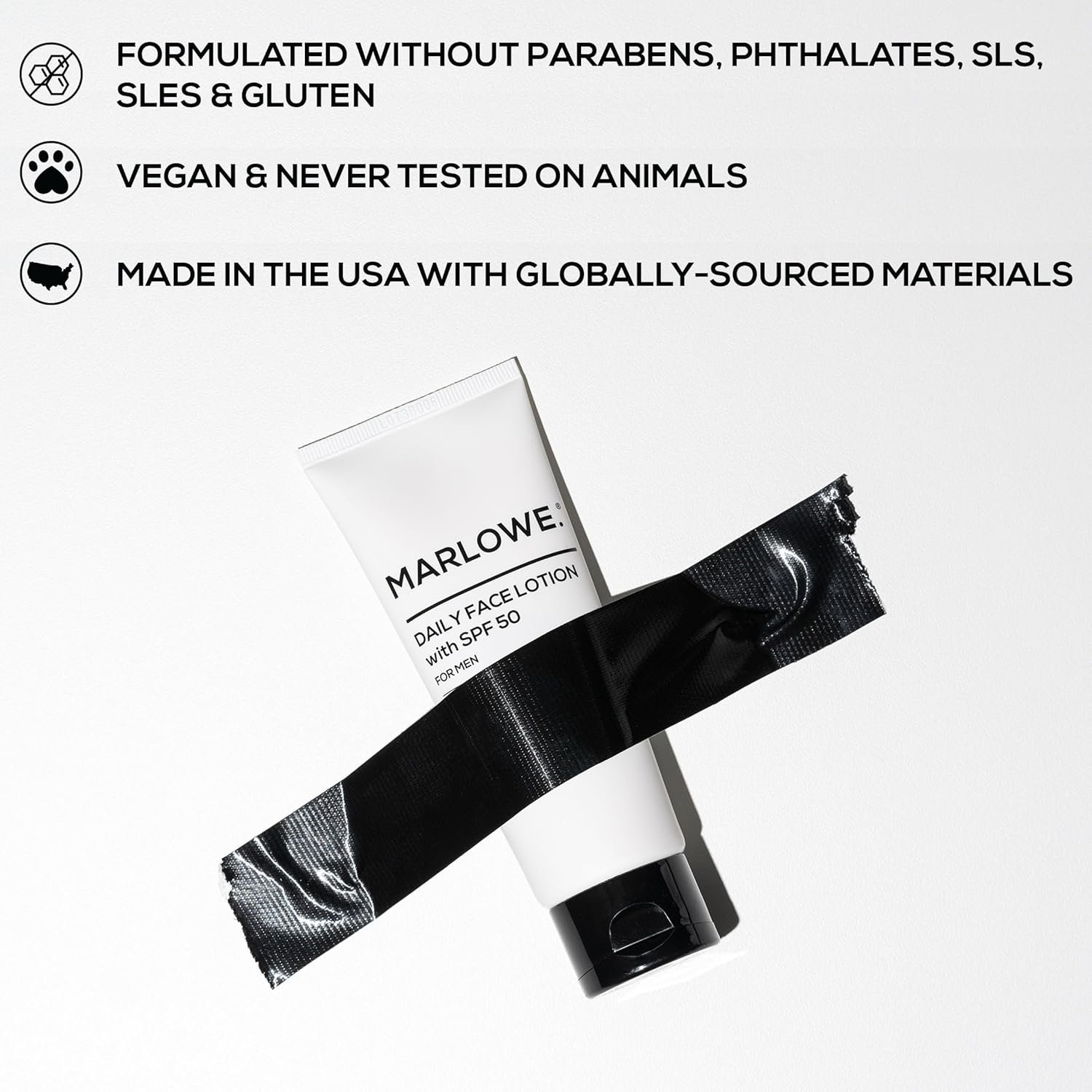 EXPERIENCE THE MARLOWE. DIFFERENCE: Our non-comedogenic, oil-free mens face lotion with SPF 50 sunscreen is crafted with aloe vera and shea butter to lock in in moisture and help soothe skin without a greasy after-feel. Water and sweat resistant for 80 mins