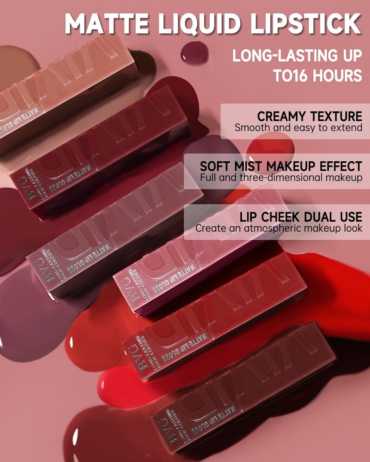 Widely Used Lip Makeup – The 6 colors matte lipstick set can meet all seasons daily makeup needs. especially in the office, daily makeup, dating, shopping, wedding, party with friends. You can choose the right lipstick color for different outfits, different occasions or moods, and the comfortable matte lip makeup will help you have a great day.These are very convenient, very beautiful lip makeup, easy to wear.