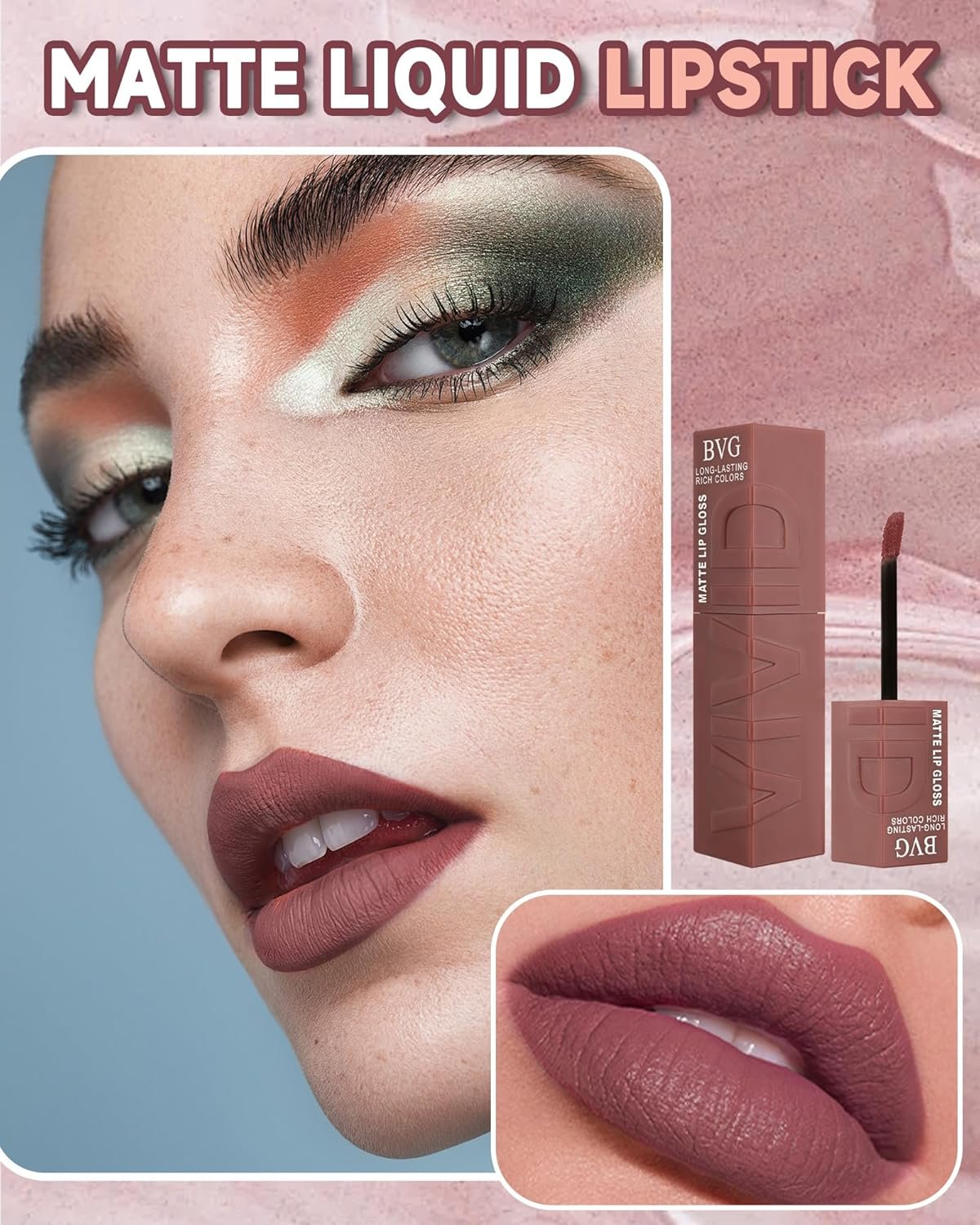 Matte Liquid Lipstick for Women-Nude Superstay Vinyl Lip Stick Liquid Red Lipcolor Makeup,Long Lasting 24 Hour Waterproof Velvet Lip Stain,Highly Pigmented Color Lifter Lipgloss,Non-Stick Lip Tint Lip Stick Lip Makeup Birthday, Mother’s Day, party Gift for Women and Girls.