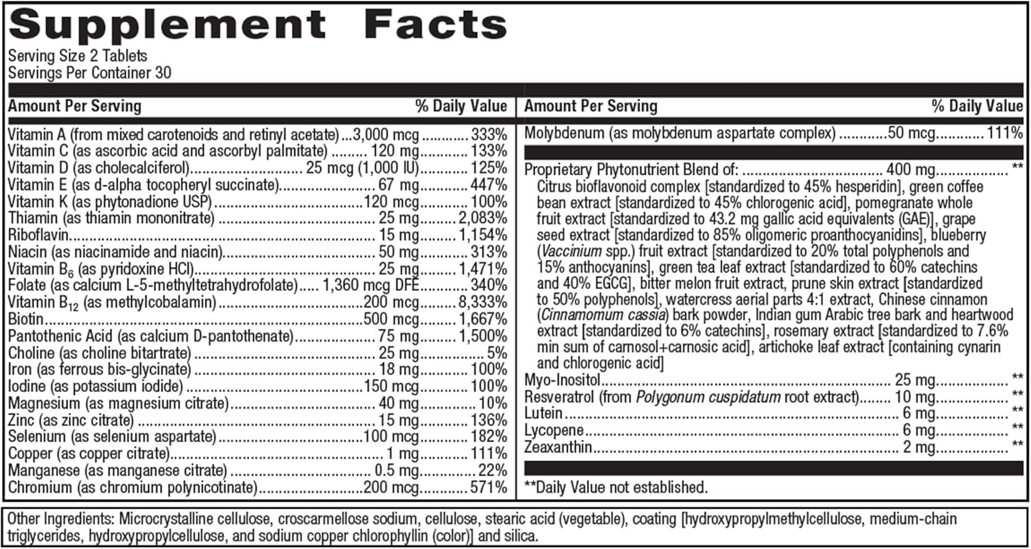 PhytoMulti Supplement: Proprietary blend of 13 concentrated extracts and phytonutrients found in a healthy Mediterranean diet