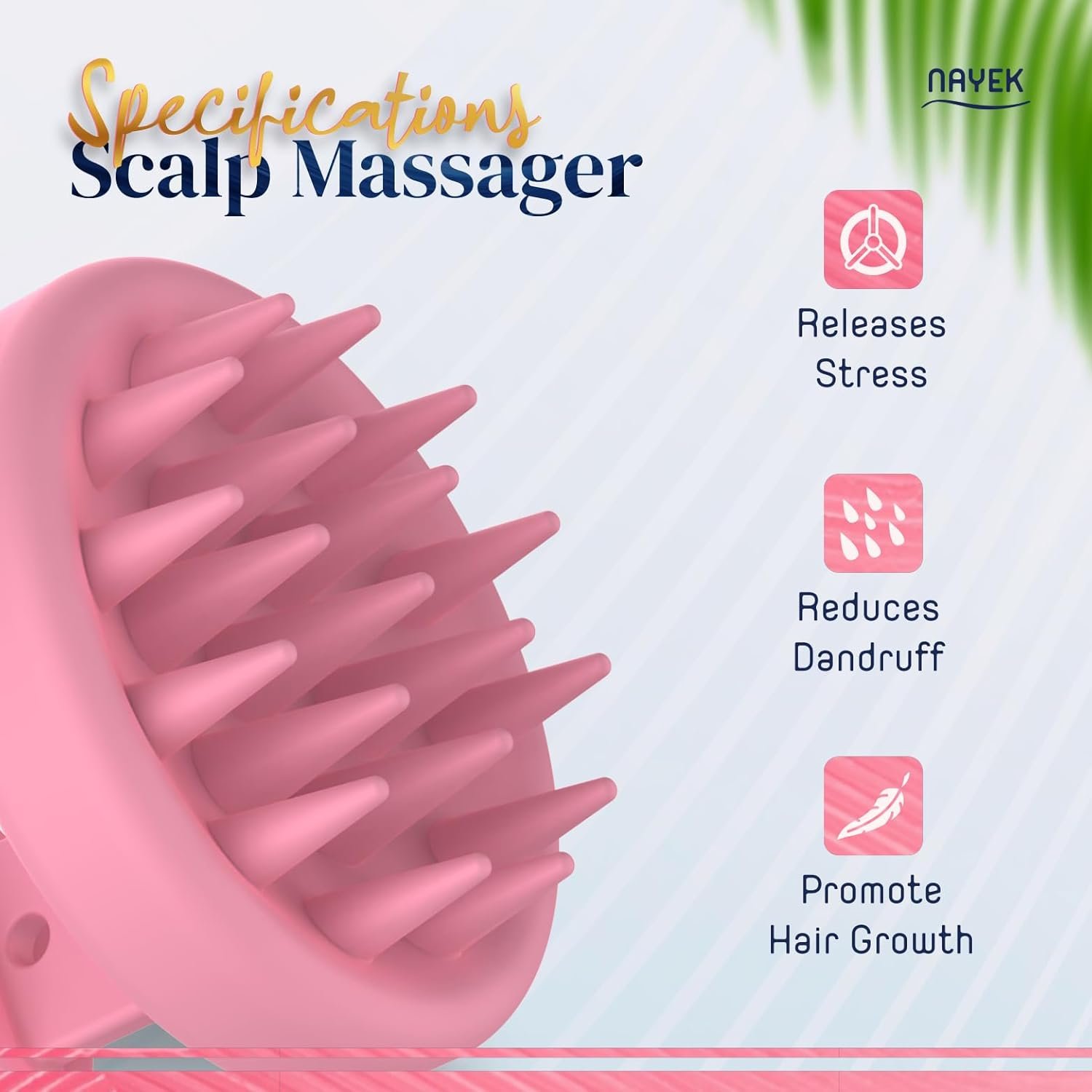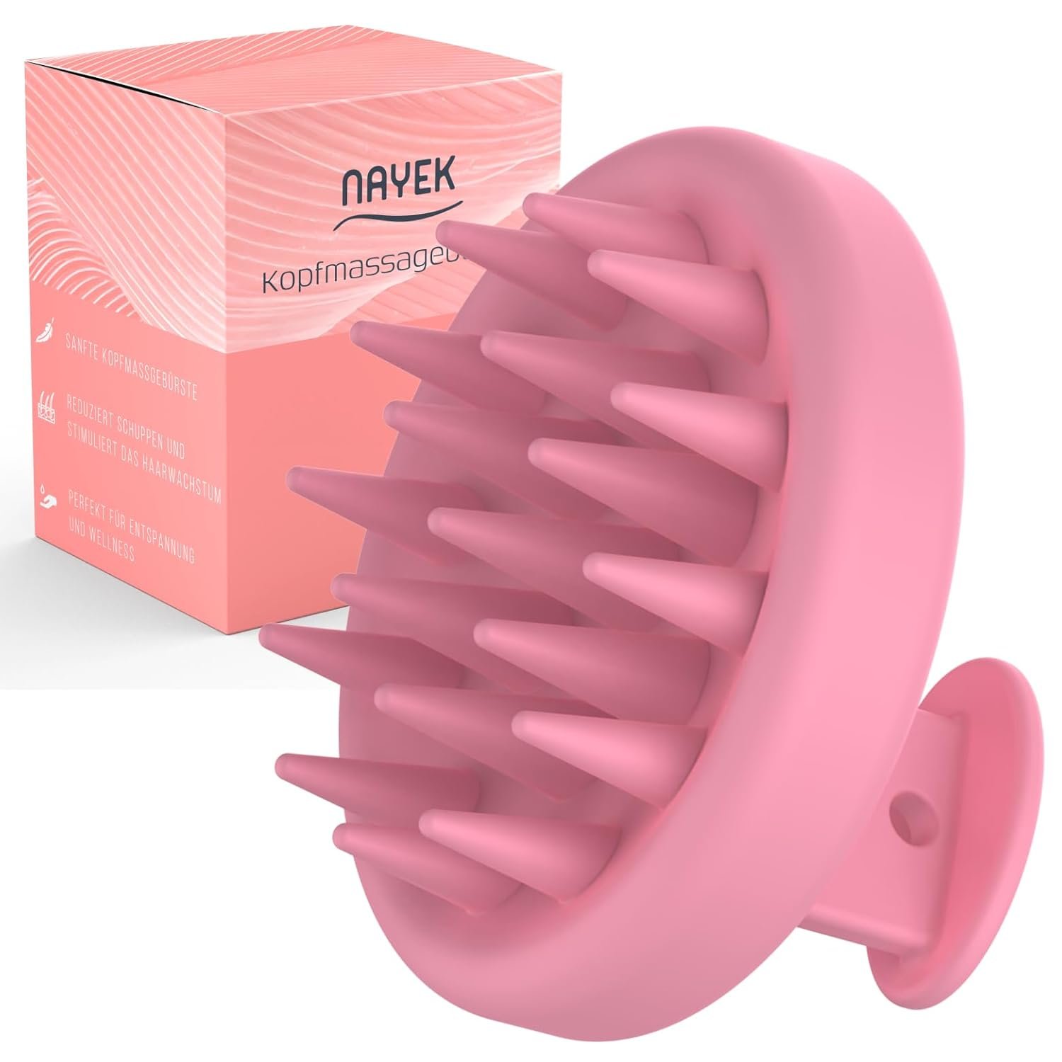 Description: Introducing the NAYEK Scalp Scrubber – your key to healthy hair! Experience the soothing magic of soft silicone bristles that promote blood circulation, soothe itchy/dry scalp, improve hair health and reduce dandruff. Our unique and practical shampoo brush lathers the shampoo effortlessly, reaching every part of your scalp while protecting your manicure. The ultimate scalp scrub for all hair types, perfect for thick and thin hair, guarantees a thorough cleaning and revitalised the hair. The one-piece design is made of 100% odour-free, environmentally conscious silicone and ensures a hygienic and safe scalp massage. Give your loved ones this spa-like experience, elegantly packaged in stunning color box packaging. Improve your hair care routine with the NAYEK scalp massage