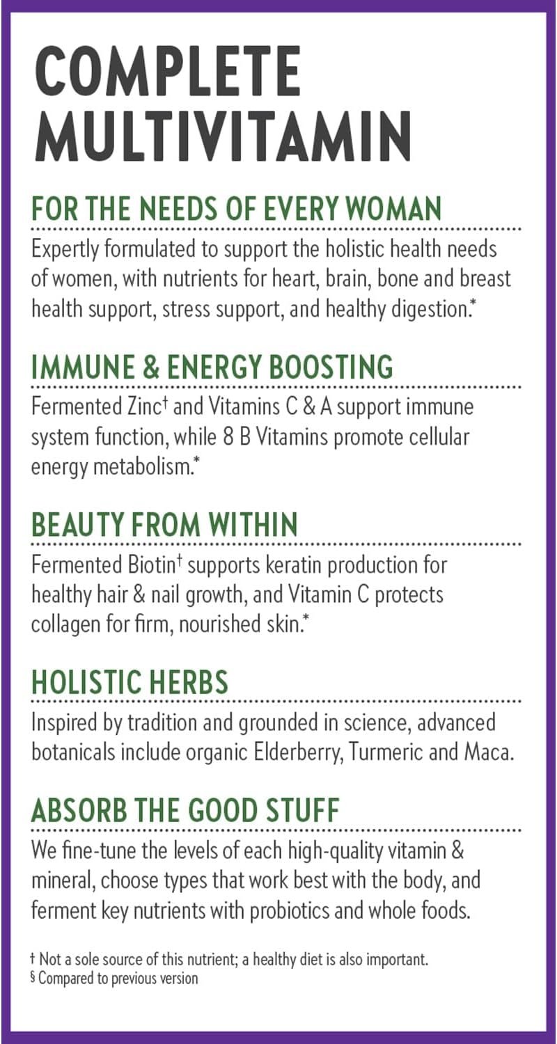 WOMEN’S MULTIVITAMIN: Absorb the natural goodness of whole-food fermented nutrients formulated for your body to recognize as food