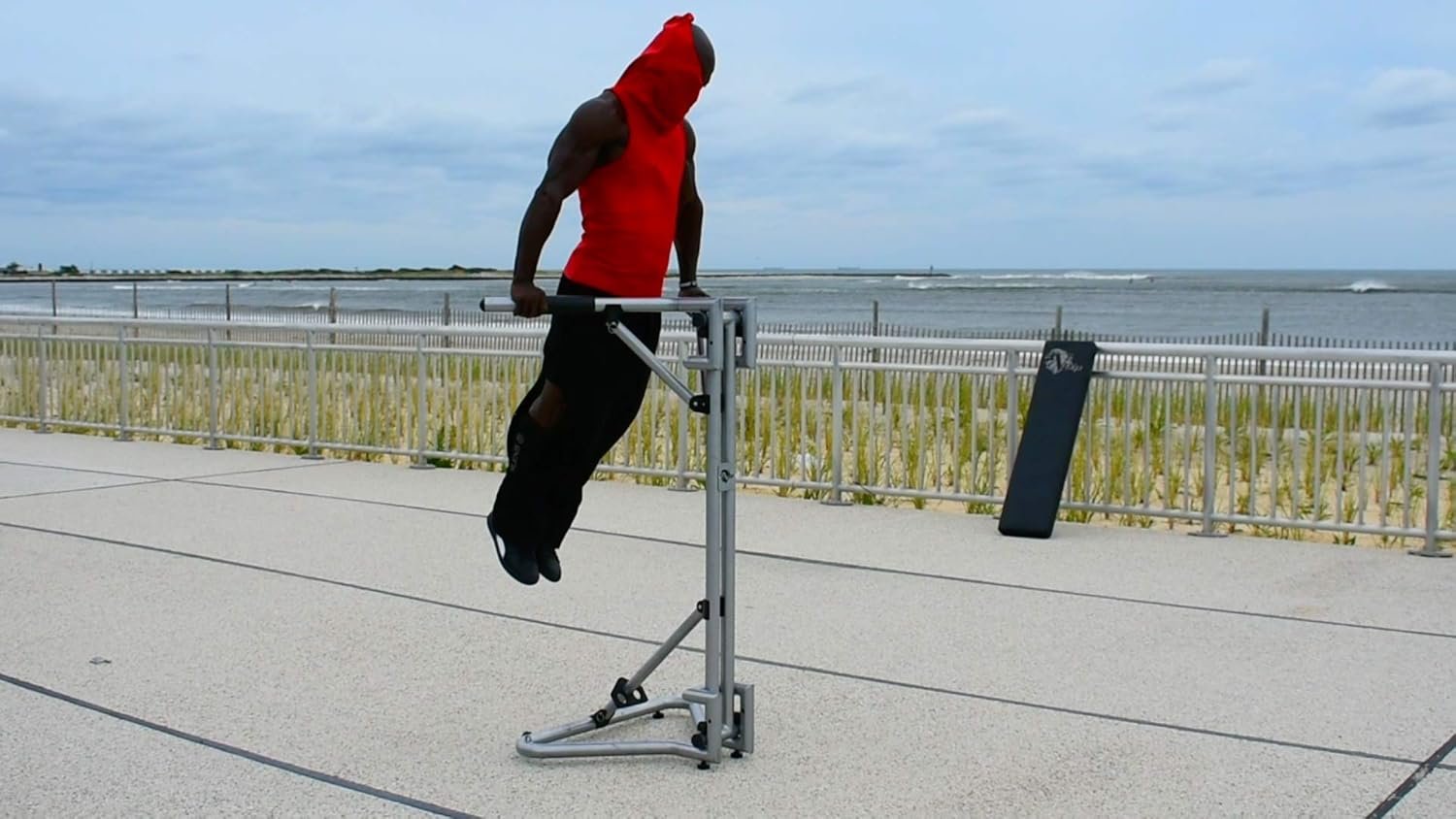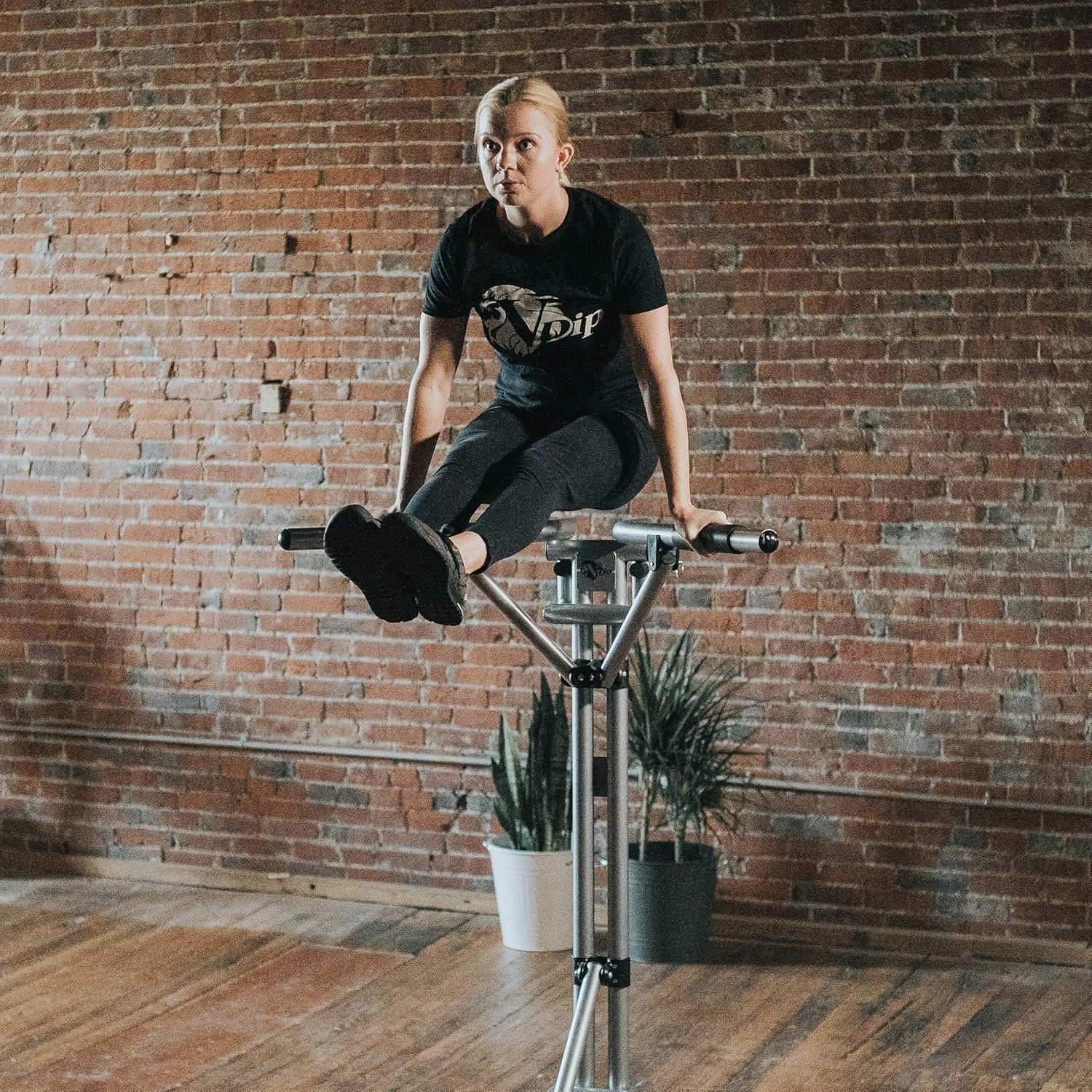 💪 Leg lifts – While under the Vdip bar, raise your legs in a 90-degree angle, then start lifting your entire body.