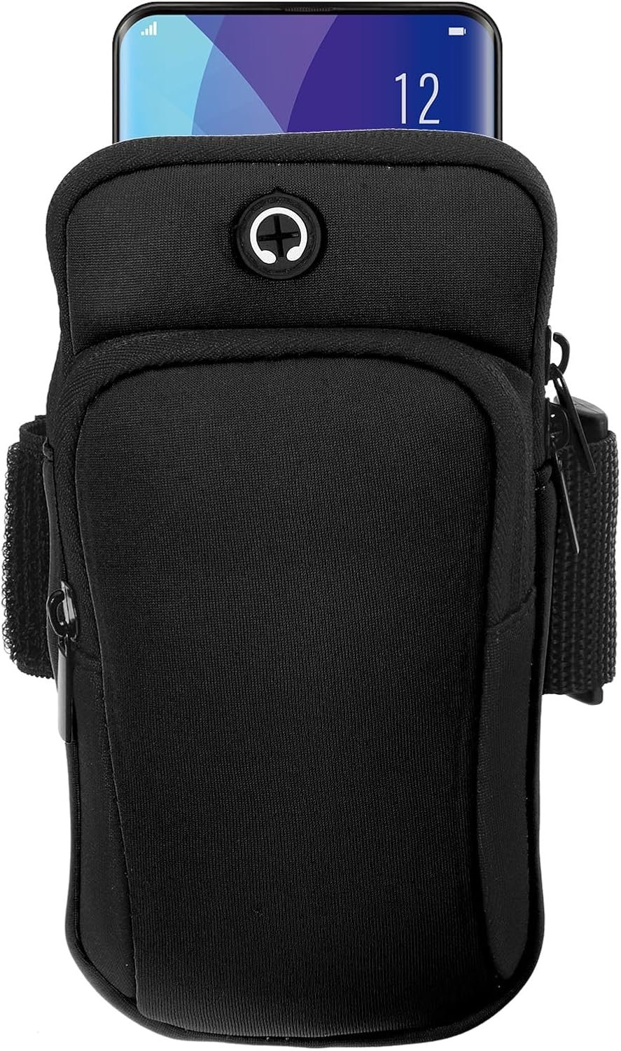 The arm band fits most 6.5-inch and below phones and comes with an earphone hole so you can listen to music without having to take your phone out.