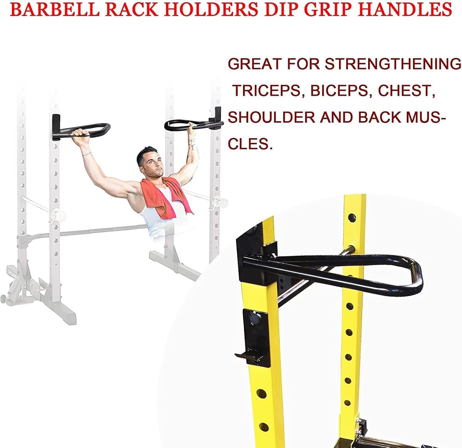 【3 HAND GRIP POSITIONS】Multi grip dip, pull up, and push-up handles. Features 3 different hand grip positions (Angled, Parallel and Linear) for building different muscle groups. Great for strengthening triceps, biceps, chest, shoulder and back muscles. Squat Rack Accessories are especially perfect for home gym, garage gym, or commercial fitness facilities with a small space.