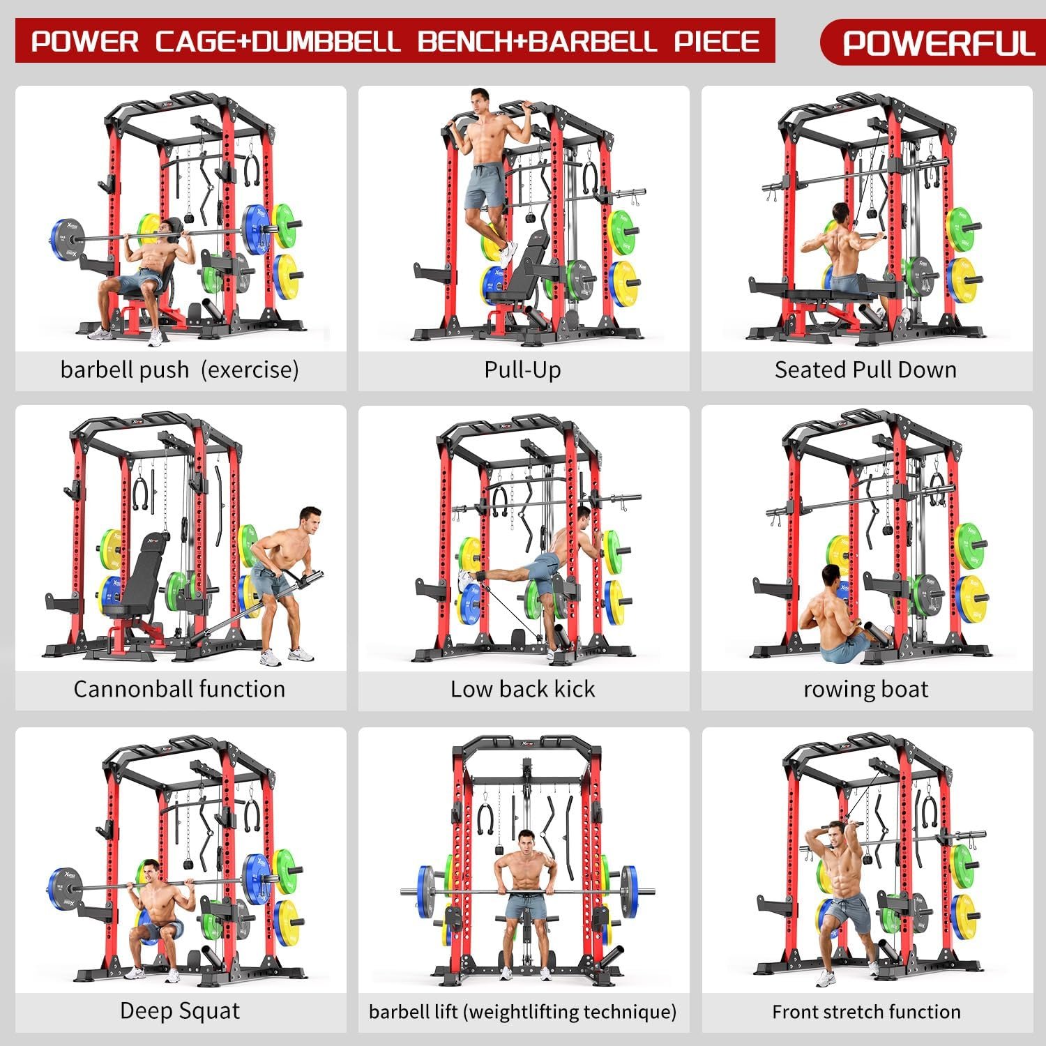 TOTAL BODY WORKOUT L01 power cage with cable crossover system can satisfy your different training purposes such as wide/close-grip pull-ups, squat, weight lifting, bench press, dips and push-ups. It helps you carry out total body workout at home and sculpt muscles on your arms, shoulders, back, buttocks, chest and abdomen