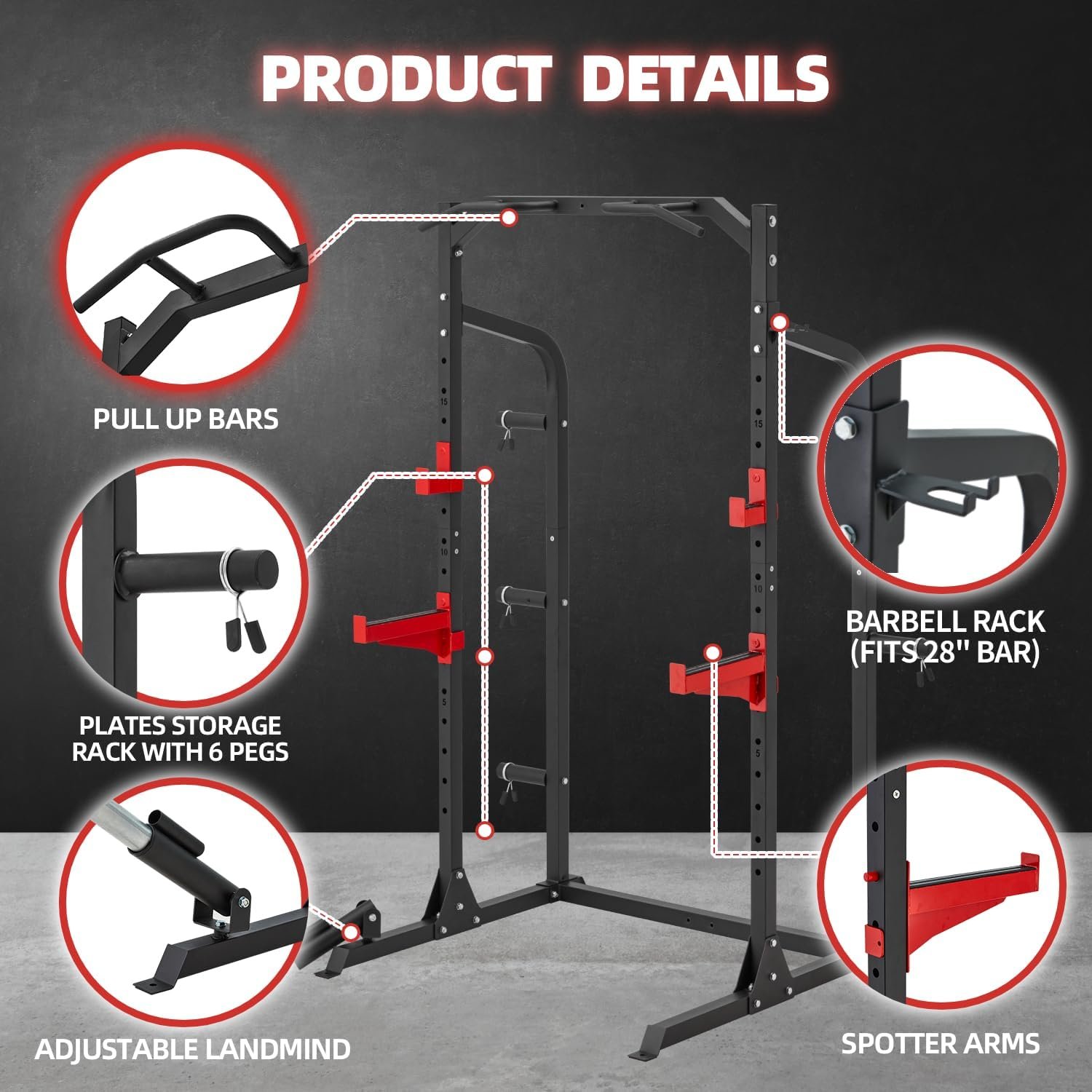Power Rack Squat Rack for Home Gym, 1000LBS Power Cage Half Rack with Pull Up Bar,Safety Bar and Landmine,Gym Rack for Weight Lifting, Bench Press and Squat, with Weight Bench