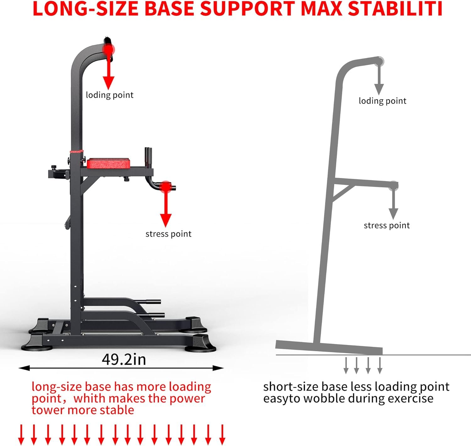 【STURDY AND DURABLE】 The solid power tower is made of thickened heavy duty steel construction with high-density foam rubber grips, antiskid screws and armrests ,The square tube be thicker and wider than other products, It can holds up to 450lbs easily.