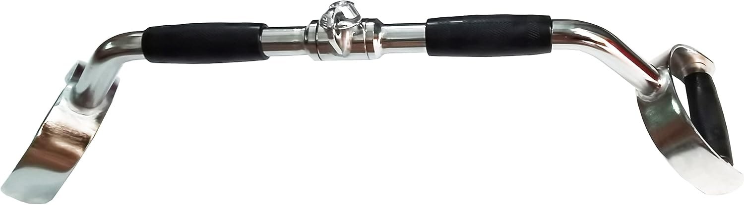 Ideal for tricep press-downs and other exercises, target surrounding muscles. Features a durable steel construction, revolving hanger, Rubber Handgrips. Perfect addition to your gym.